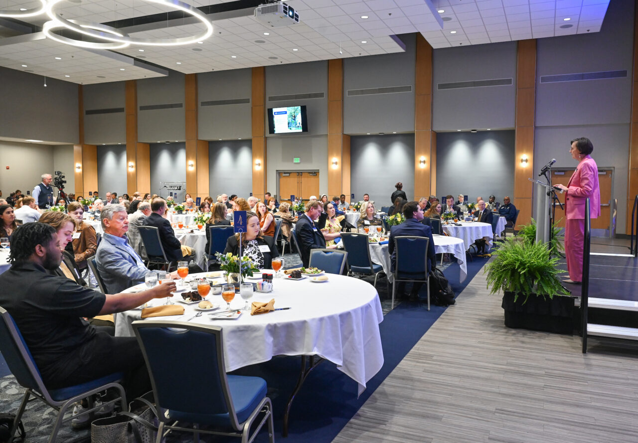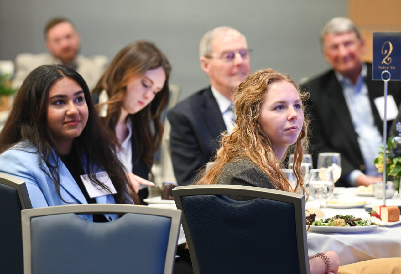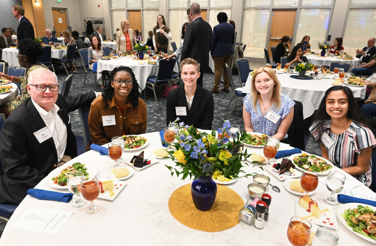 Luncheon attendees were then treated to a video featuring five student scholarship recipients from across campus—Reuben Lowery, Jannat Saeed, Justin Strauss, Charlie Jeffries and Malik Norwood.