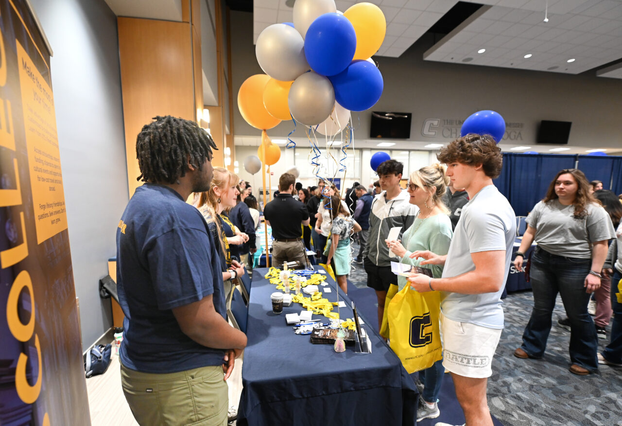 Running a booth for Student Government Association, senior theatre major and SGA marketing director Isaiah Owens said he was originally drawn to UTC for its combination of small campus charm with big city energy.