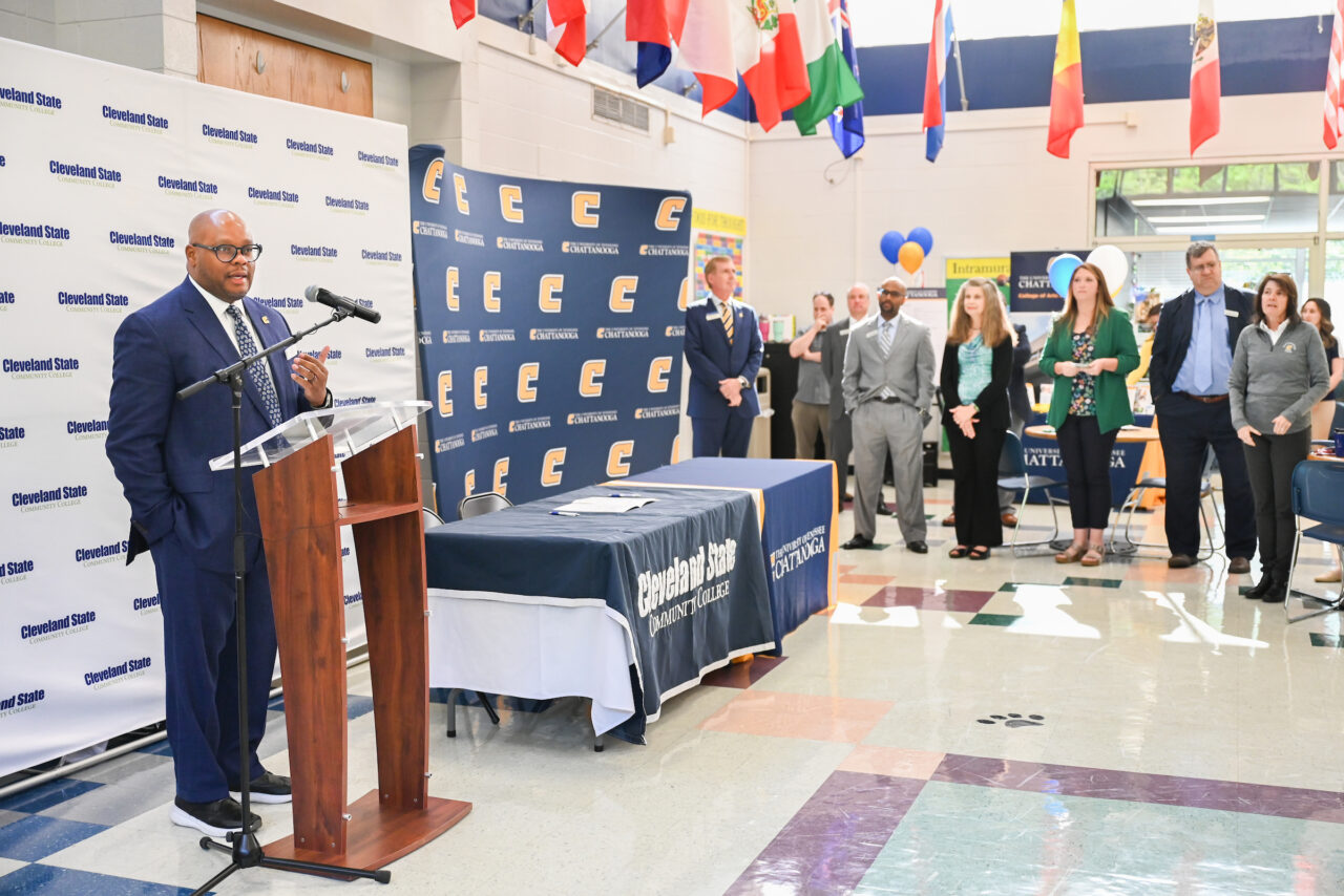 Signing ceremony speakers included Cleveland State Vice President for Academic Affairs Corey Campbell, Cleveland State Dean of Enrollment Management Cate Green, Cleveland State Vice President of Student Services Michael Stokes and UTC Vice Chancellor for Enrollment Management and Student Affairs Yancy Freeman.