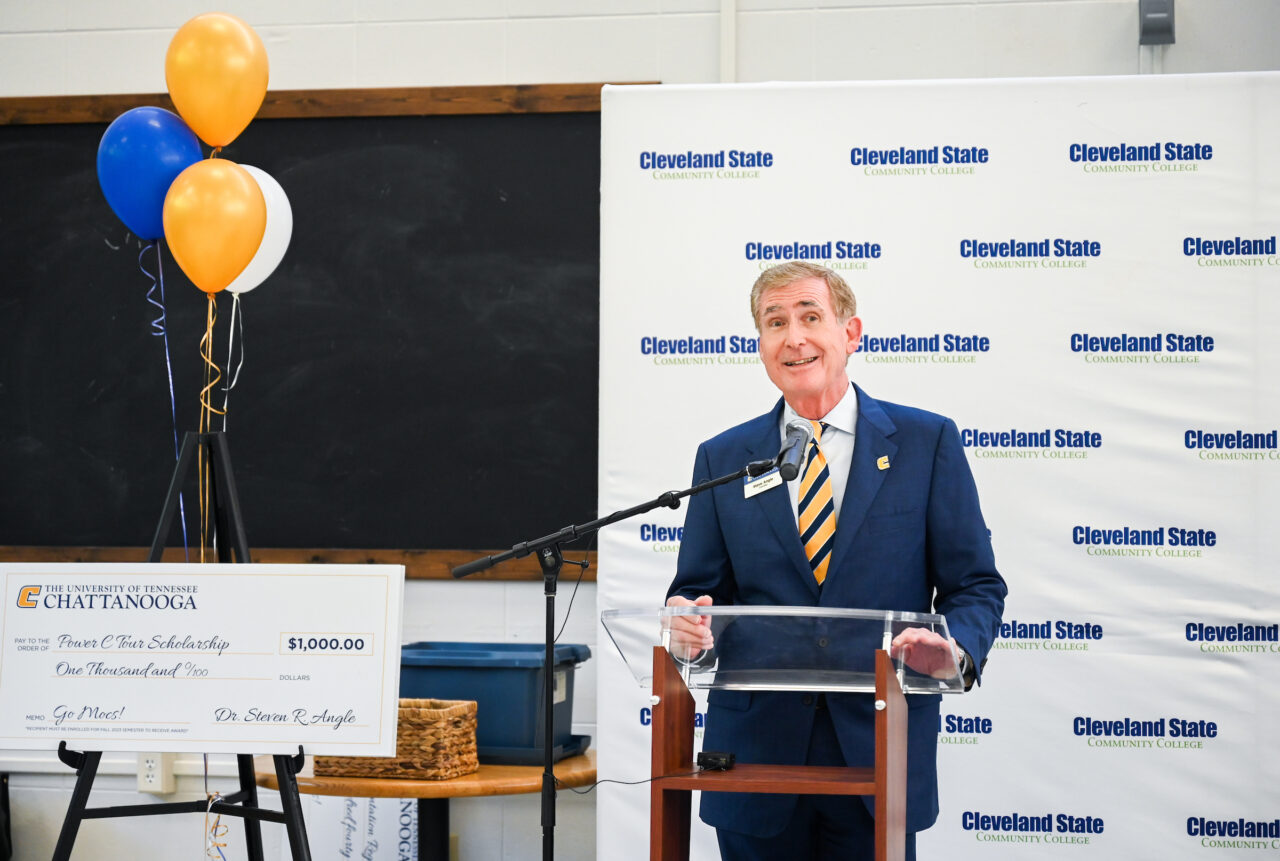 The event was highlighted by the awarding of $1,000 Power C scholarships to Jeremiah Centeno and Conner Wilkins, a pair of dual-enrollment Cleveland State students receiving associate degrees in May. Both Centeno and Wilkins will continue their education at UTC in the fall.