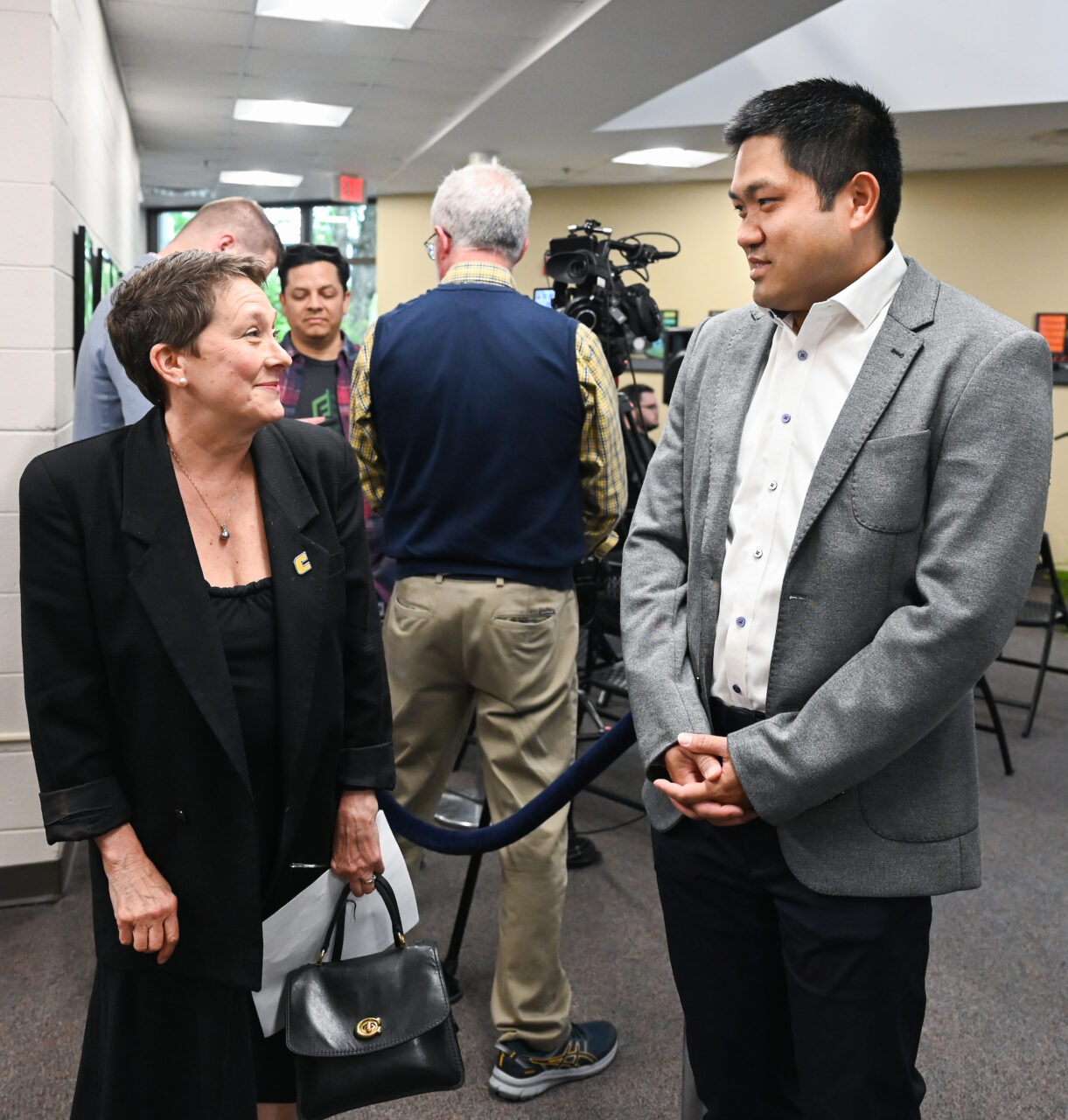 A press conference announcing the launch of the UTC Research Institute took place Monday, May 1, at the Multidisciplinary Research Building. Dr. Mina Sartipi was named executive director of the institute. Photo by Angela Foster.