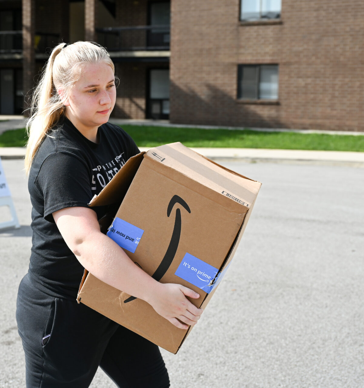As she loaded a cart to carry her belongings into Lockmiller Apartments, she said, “Part of me is nervous and a part of me is excited to start my life.”