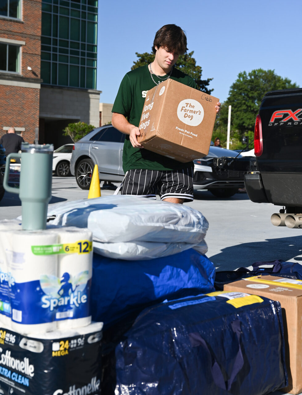 Theatre major Harris Thompson is only moving down from Signal Mountain to West Campus Housing and is not carrying a boatload of items since he can zip back home easily if he needs something.