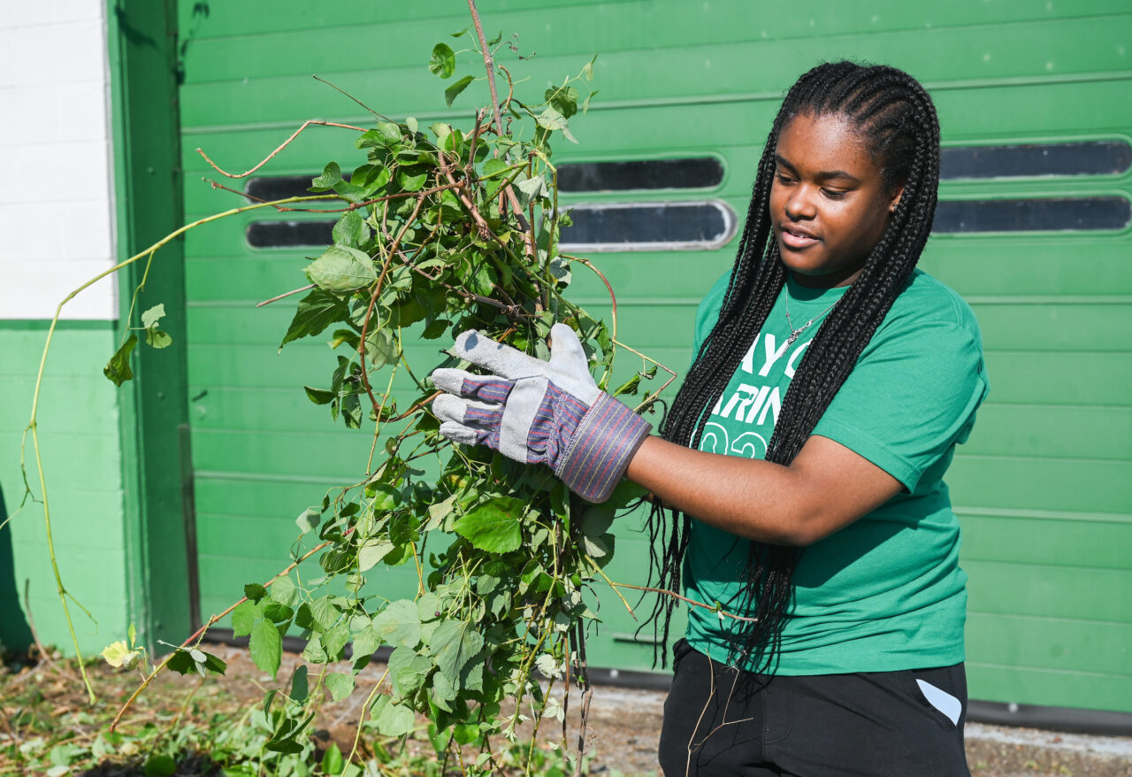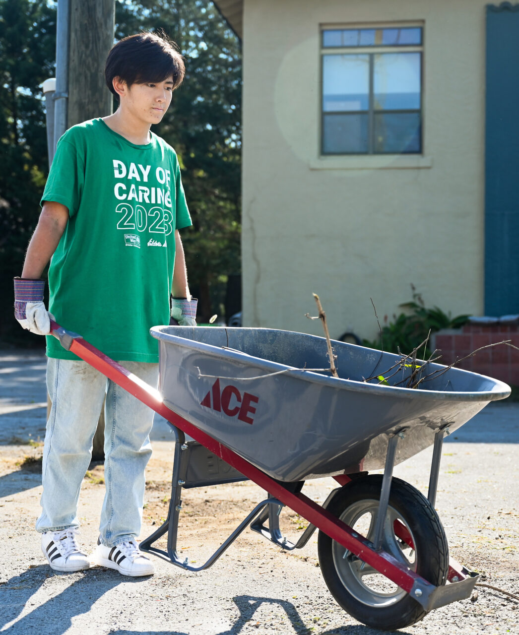 Vinson was one of 21 UTC students spread across Hamilton County on Friday, Sept. 22, for the United Way of Greater Chattanooga’s Day of Caring. Among other jobs, the students volunteered to paint, clean up brush and dirt, chunk building scrap into dumpsters, spray weeds in school vegetable gardens and brush spiderwebs off ceilings.