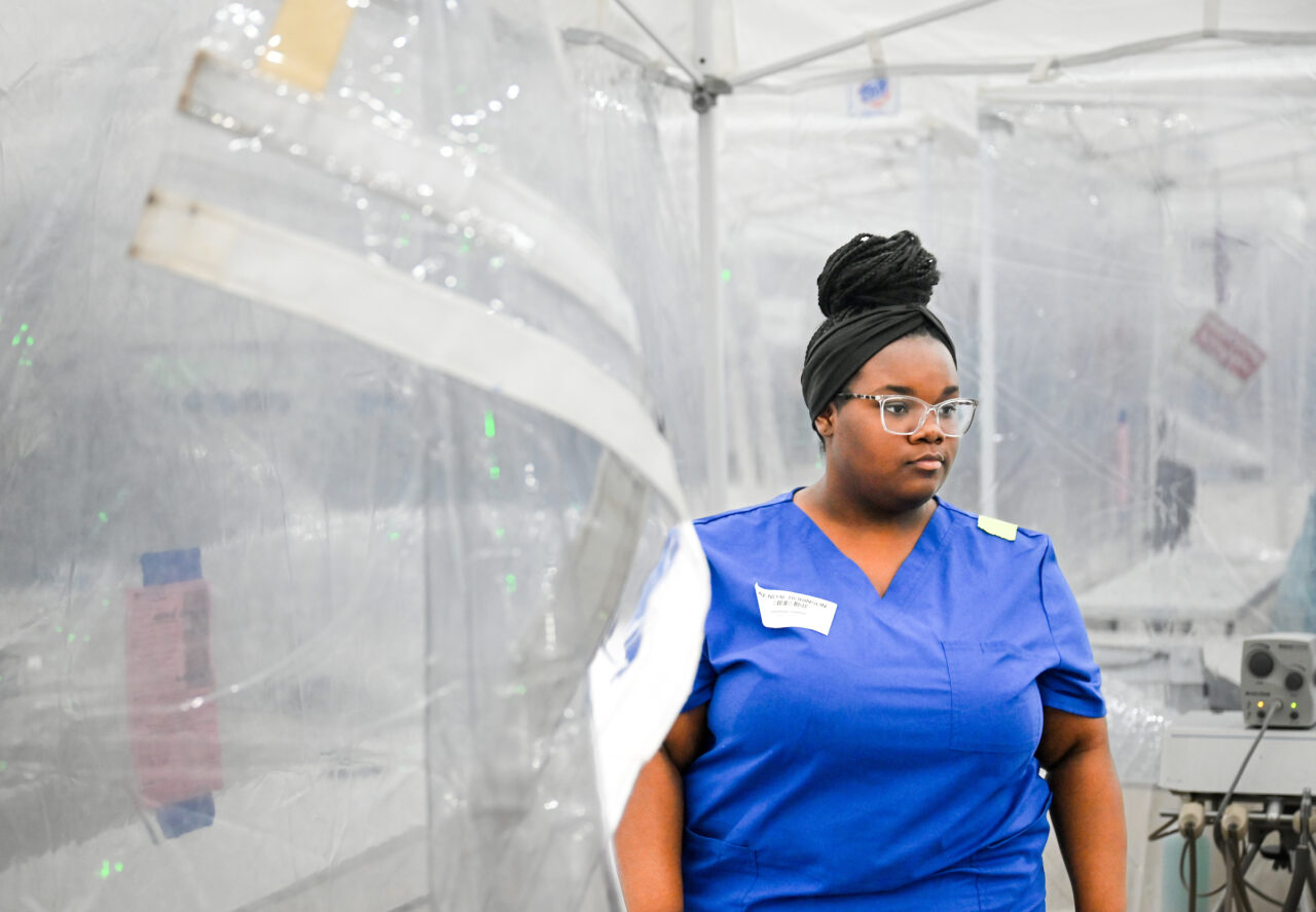 Acuna, who helped check in patients as they entered the facility, said she was interested in emergency room medicine—but was also thinking about rural medicine “so that I can provide care to low-income people or people that don’t have access to quality medical care.”