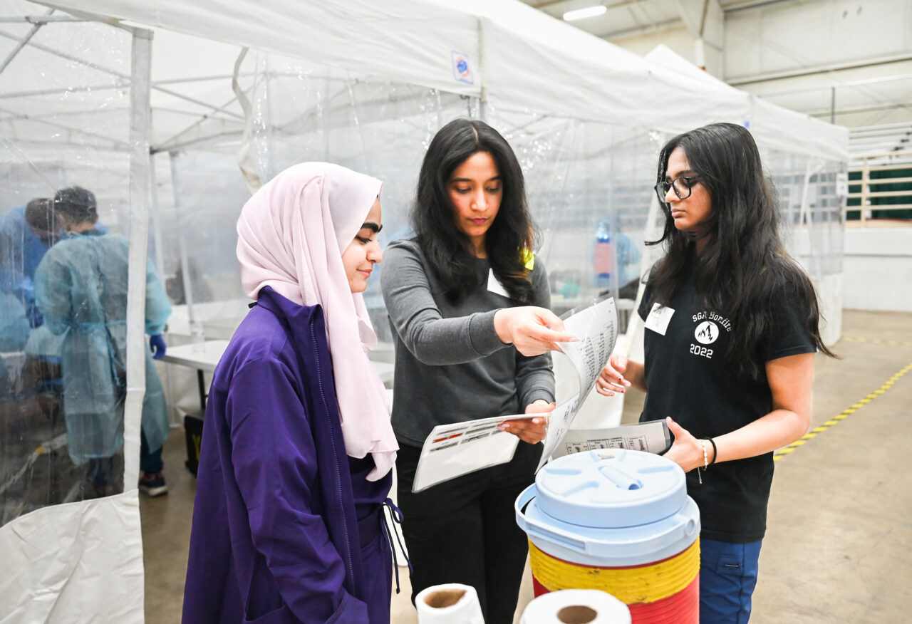 Sophomore Meera Patel, a pre-health major from Murfreesboro, Tennessee, spent much of her day escorting patients from station to station.