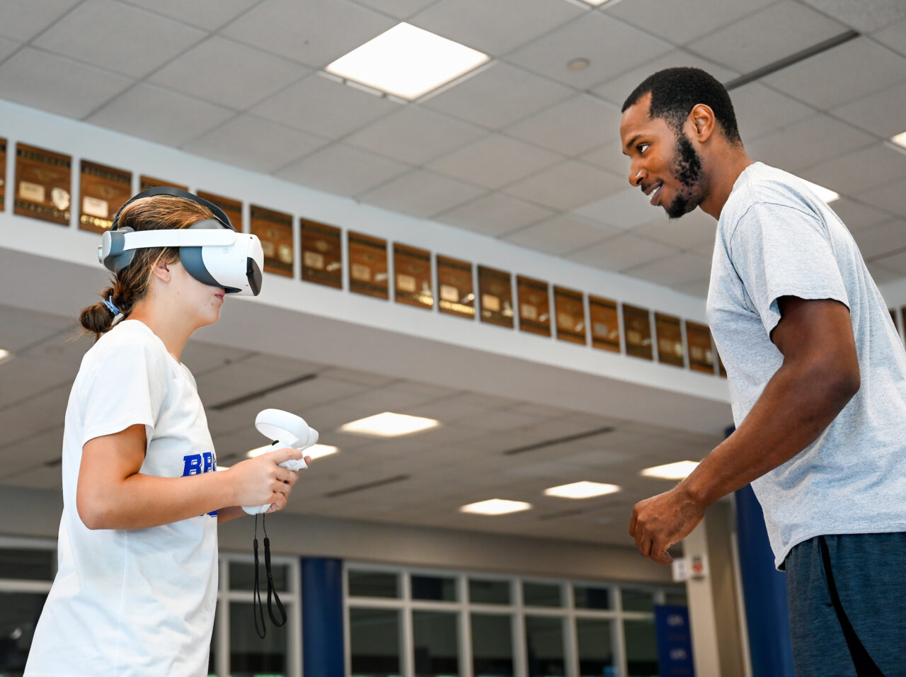 While the past couple of years were spent working with them to determine reaction time while they wore virtual reality (VR) goggles, Wilkerson recently began a training program that gets progressively more challenging. The goal is to speed reaction times by milliseconds so athletes can avoid contact or gird for it by contracting their muscles.