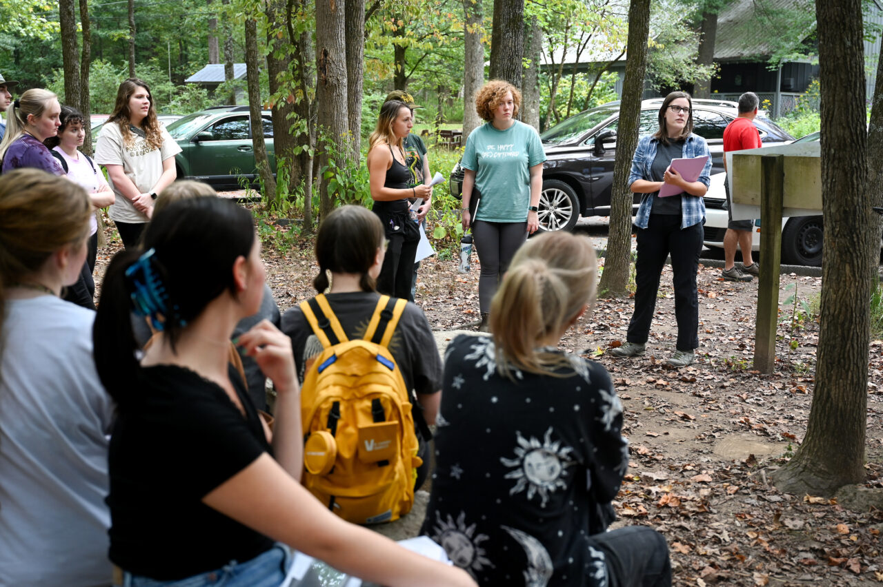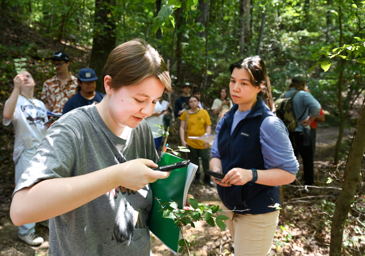 Monica Miles, right, an associate lecturer in the Department of Biology, Geology and Environmental Science, recently brought her Ecology Laboratory 3070 classes to Reflection Riding Arboretum and Nature Center. Photo by Angela Foster.