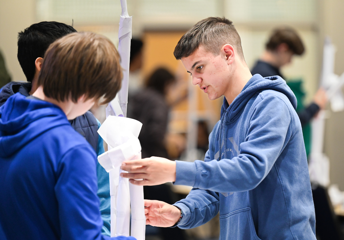 Made from paper, tape and foam, the meter-tall coasters weren’t the kind you would find in an amusement park. Teams of more than 150 students constructed the coasters as part of the third annual Marble Roller Coaster competition.