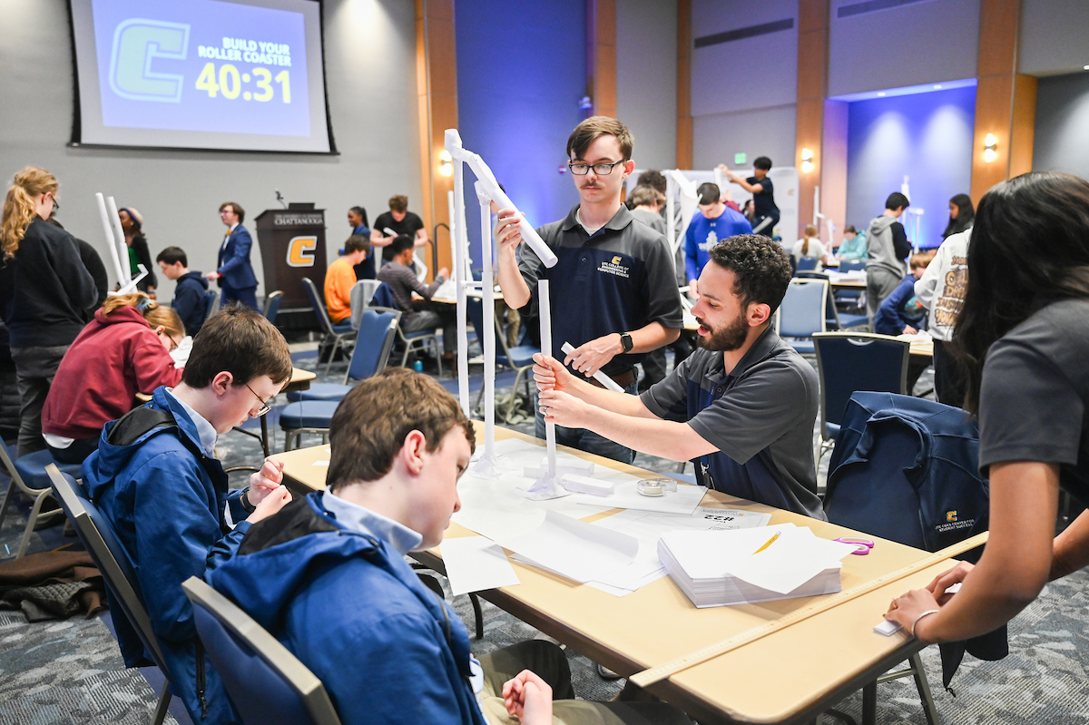 UTC student organizers of the Marble Roller Coaster competition included junior engineering management and technology major Nathaniel Andrews and Jeremiah Taylor, a civil engineering senior and president of the UTC chapter of the National Society of Black Engineers.