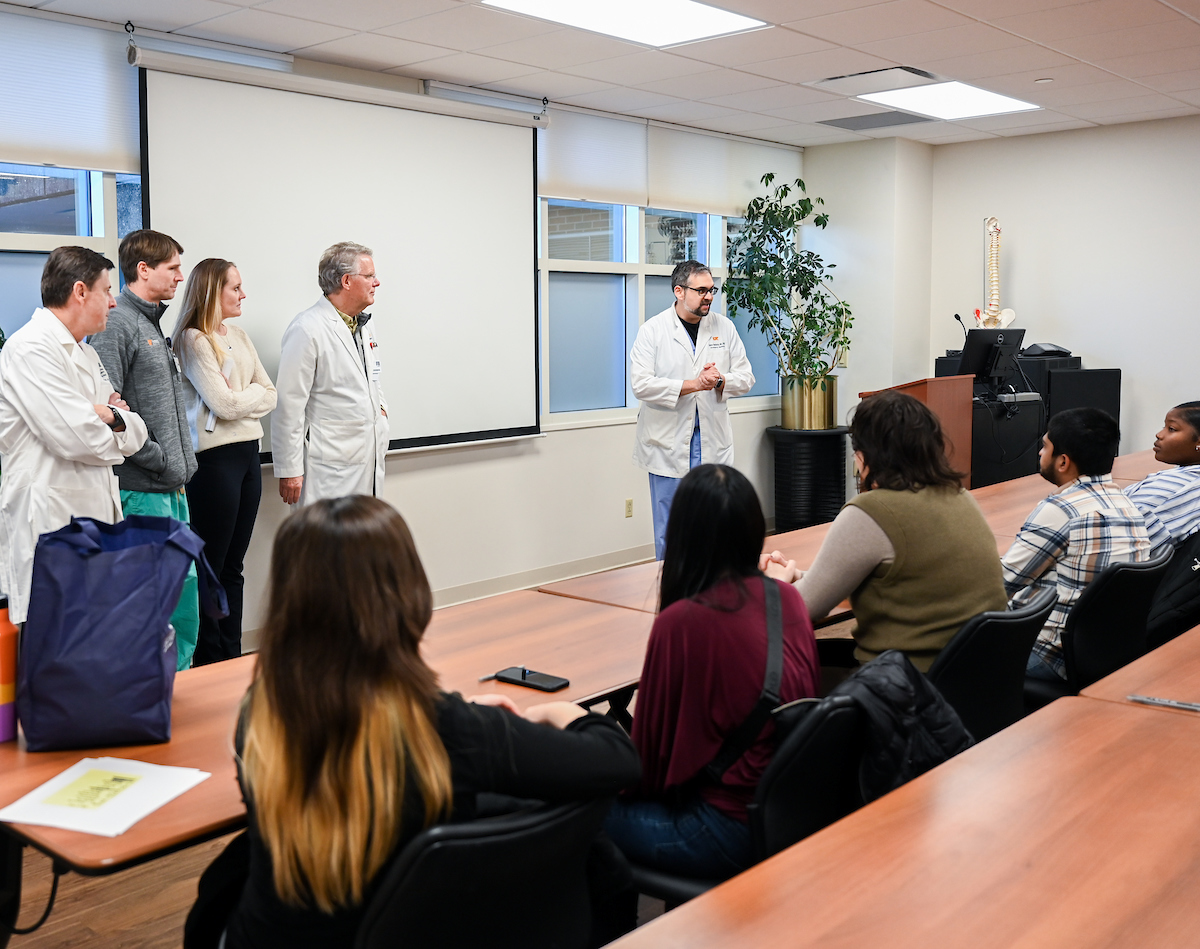 Dr. Karen Rogers speaks to a group of UTC students at the Erlanger Baroness Hospital job shadowing orientation. Photo by Angela Foster.