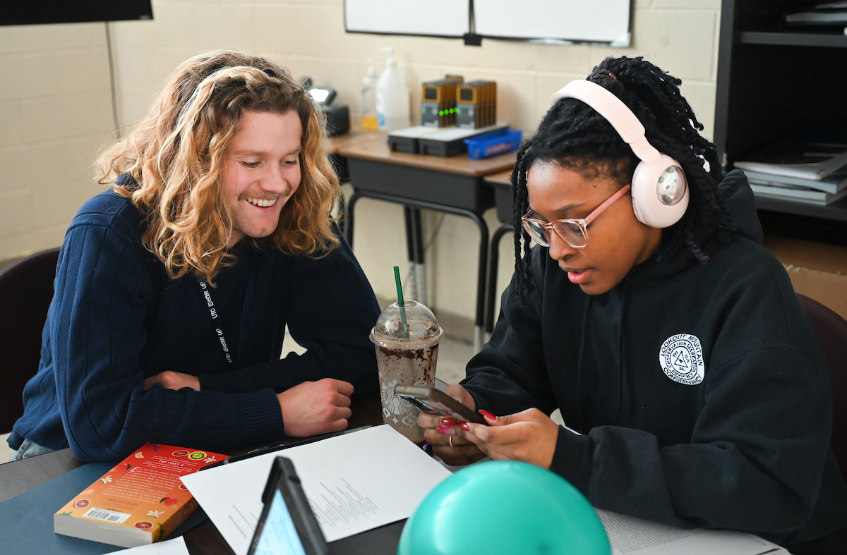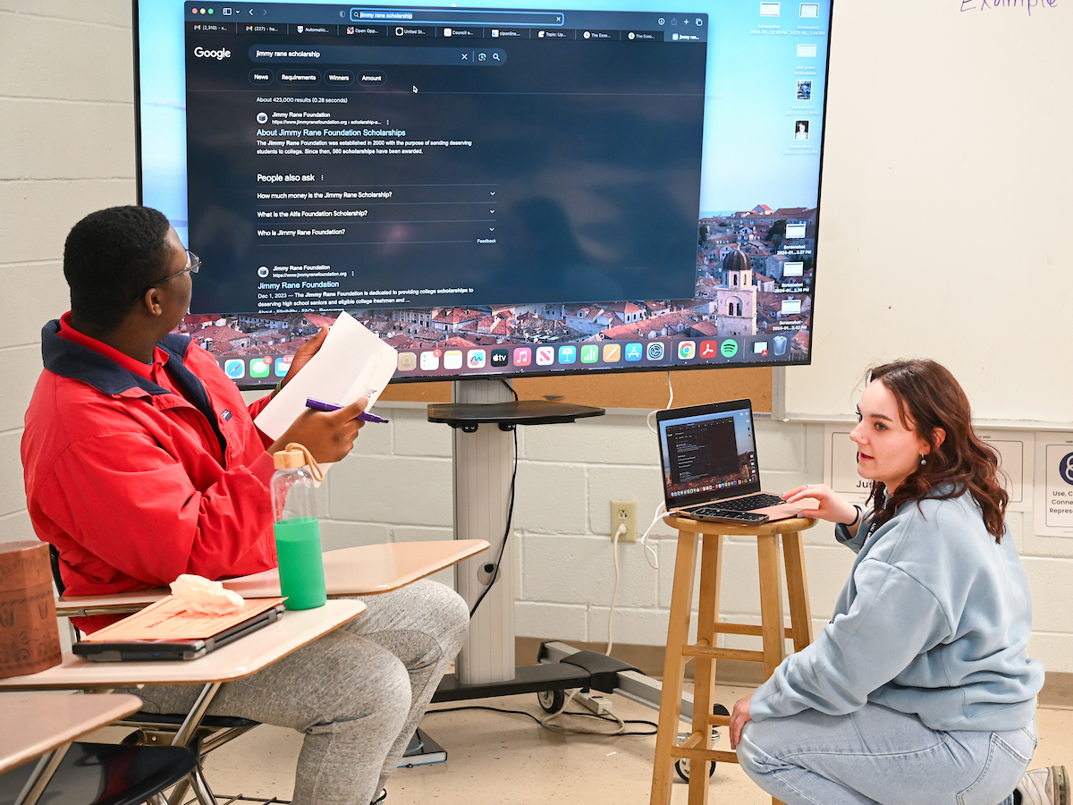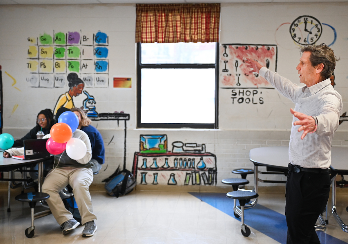 Dr. Hunter Huckabay works with GEAR UP students at The Howard School in Chattanooga. Photo by Angela Foster.