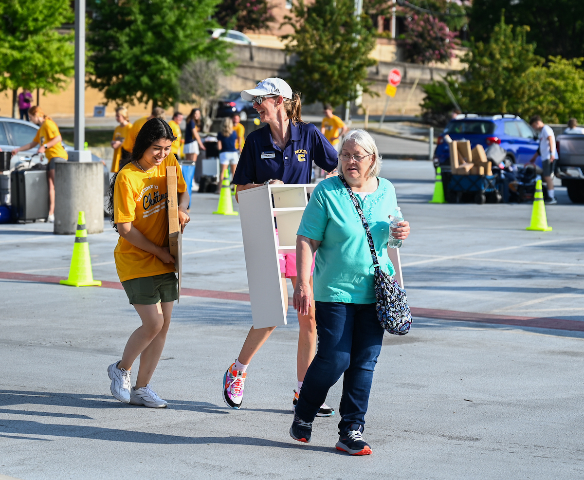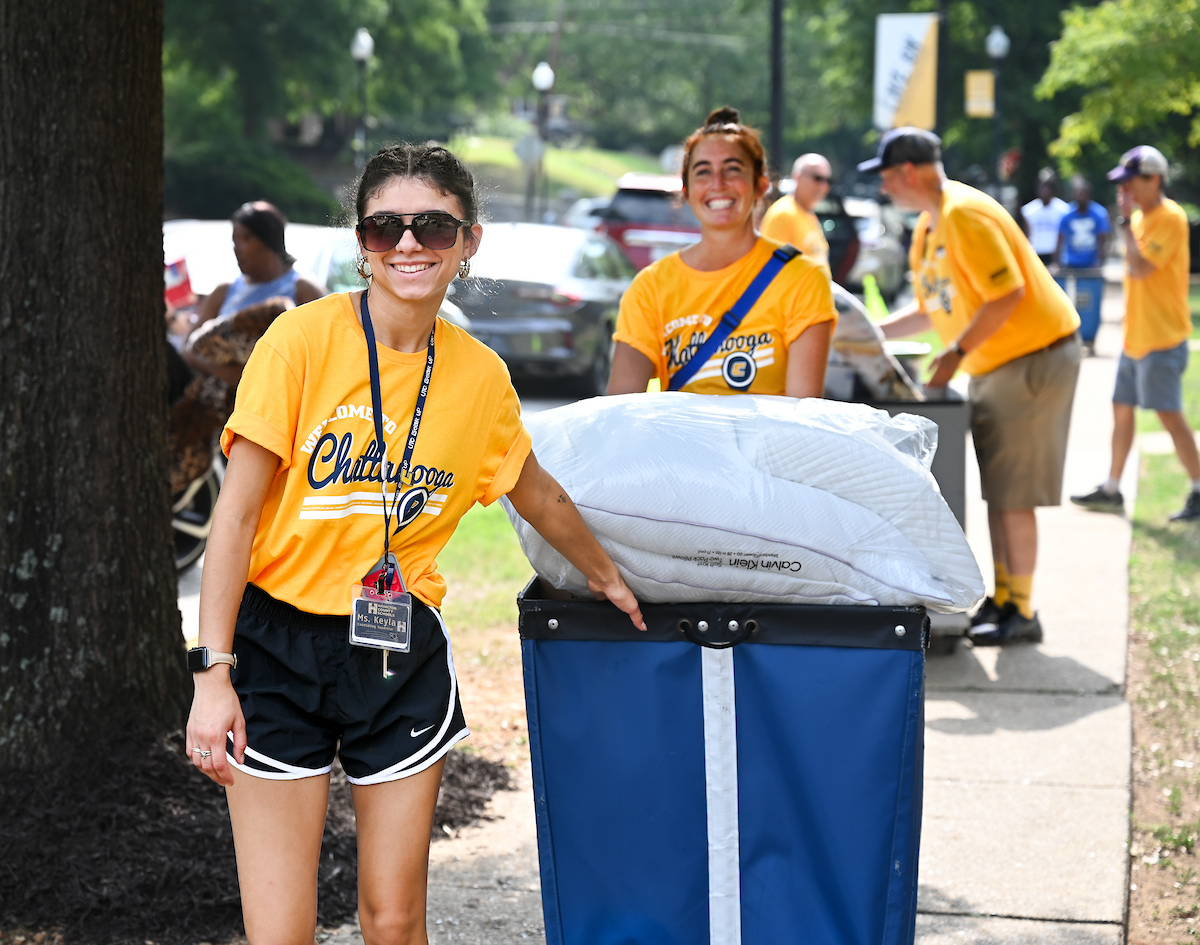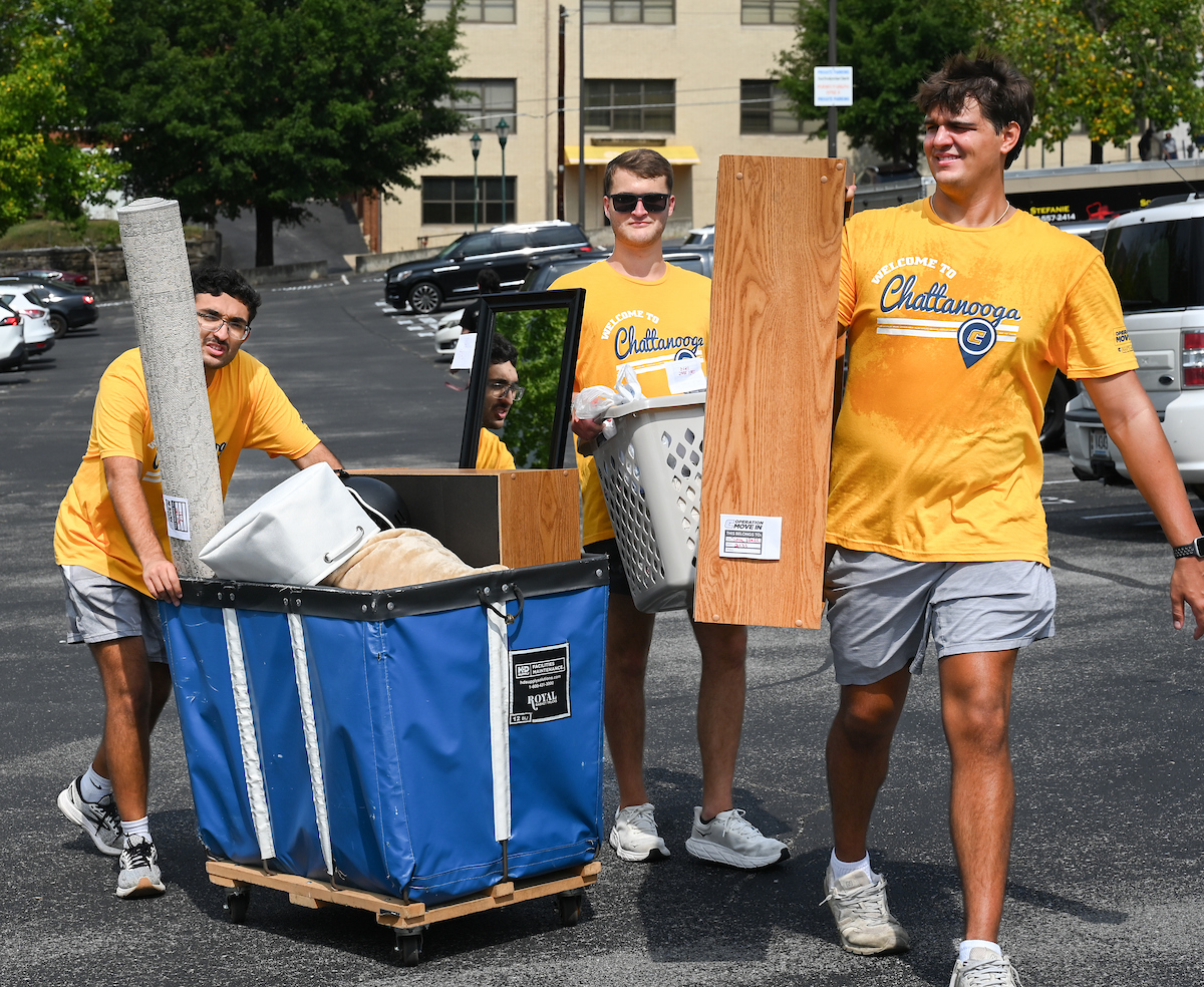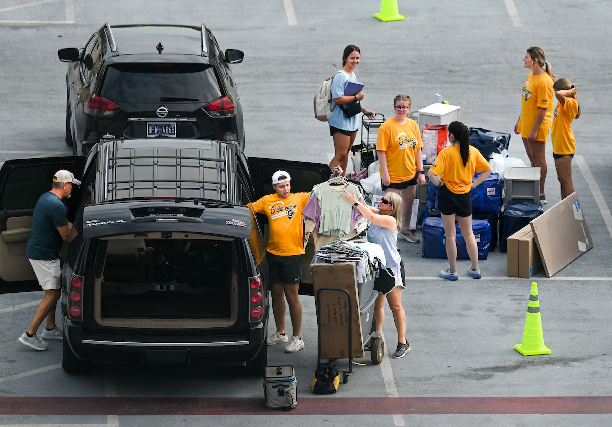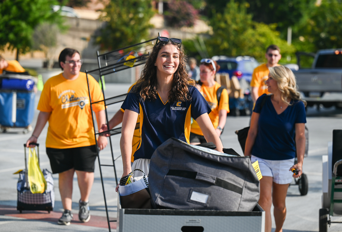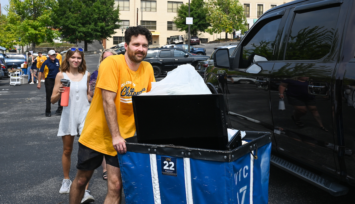 Volunteers in bright yellow UTC shirts flooded the campus as part of Operation Move In, where they helped the families of incoming students move their packed cars with dollies and carts. Music boomed as volunteers and families trekked to their dorm rooms.