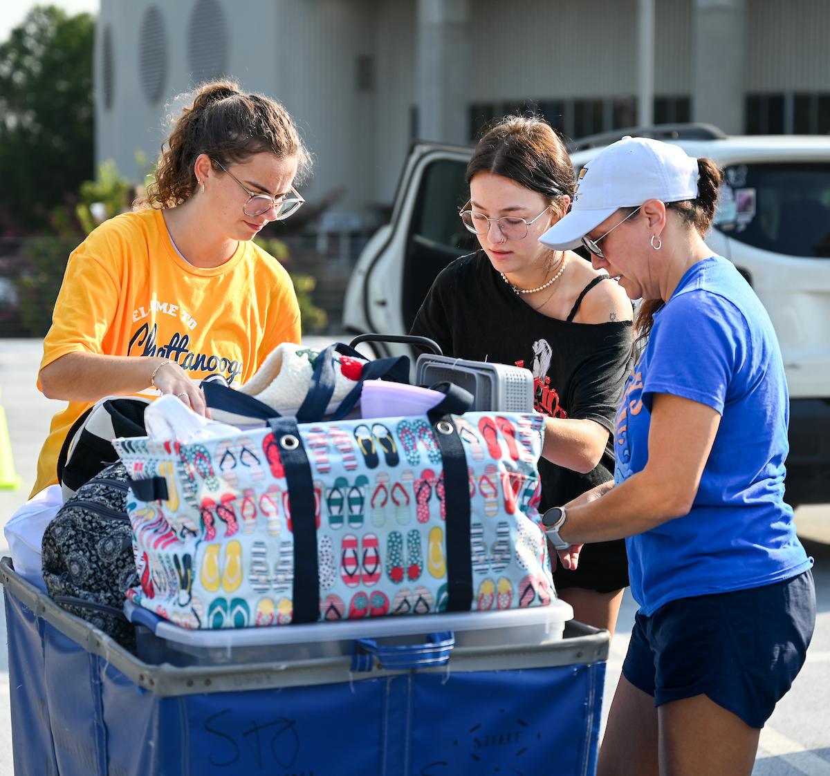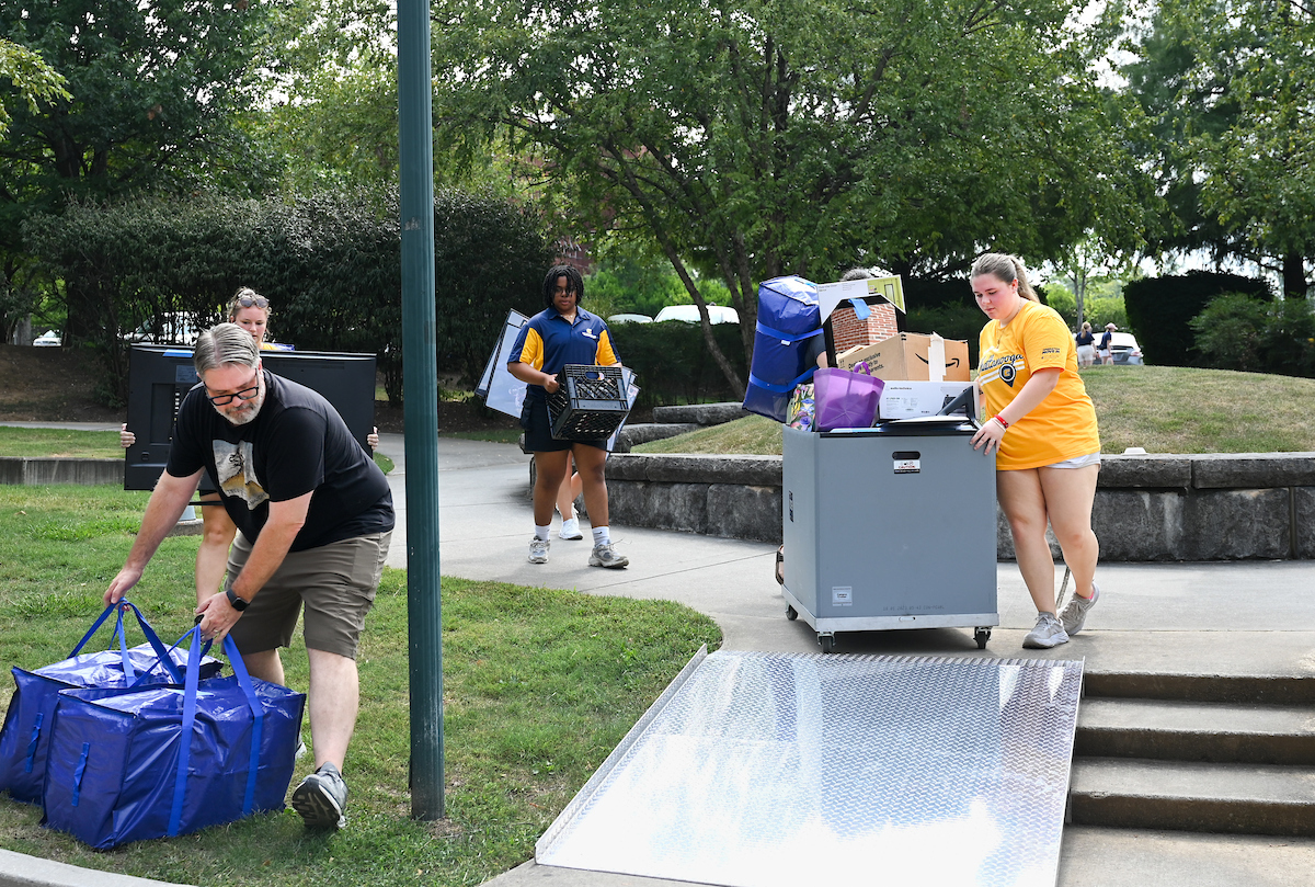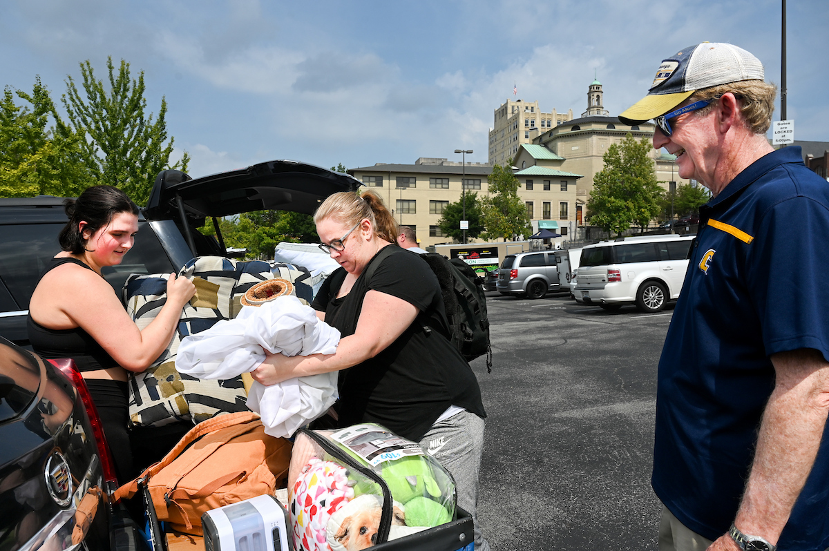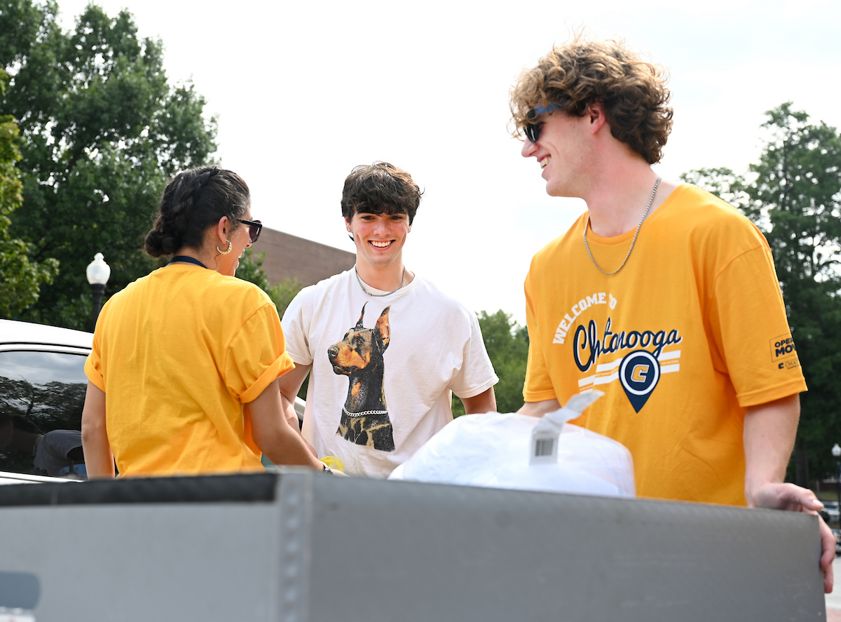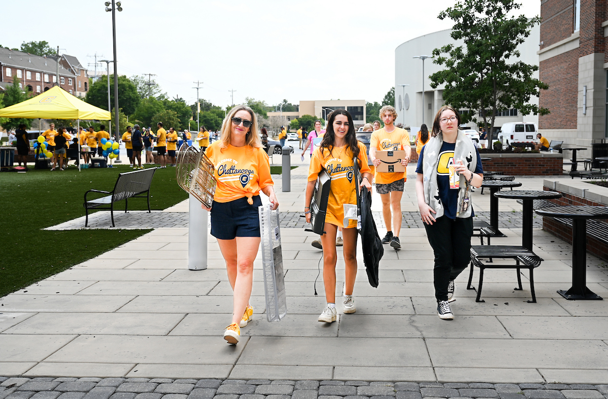 Volunteers in bright yellow UTC shirts flooded the campus as part of Operation Move In, where they helped the families of incoming students move their packed cars with dollies and carts. Music boomed as volunteers and families trekked to their dorm rooms.