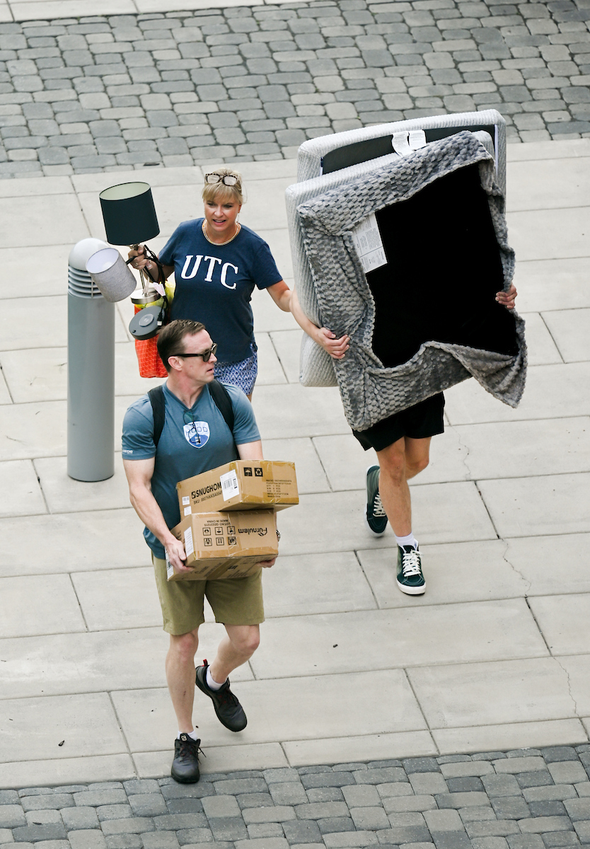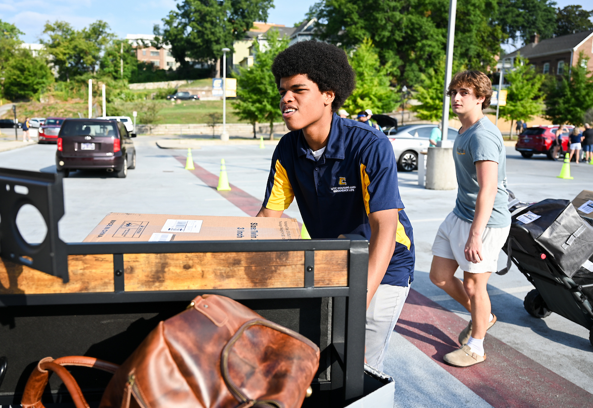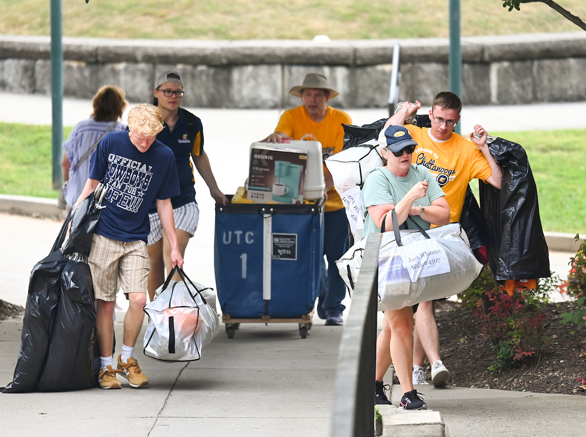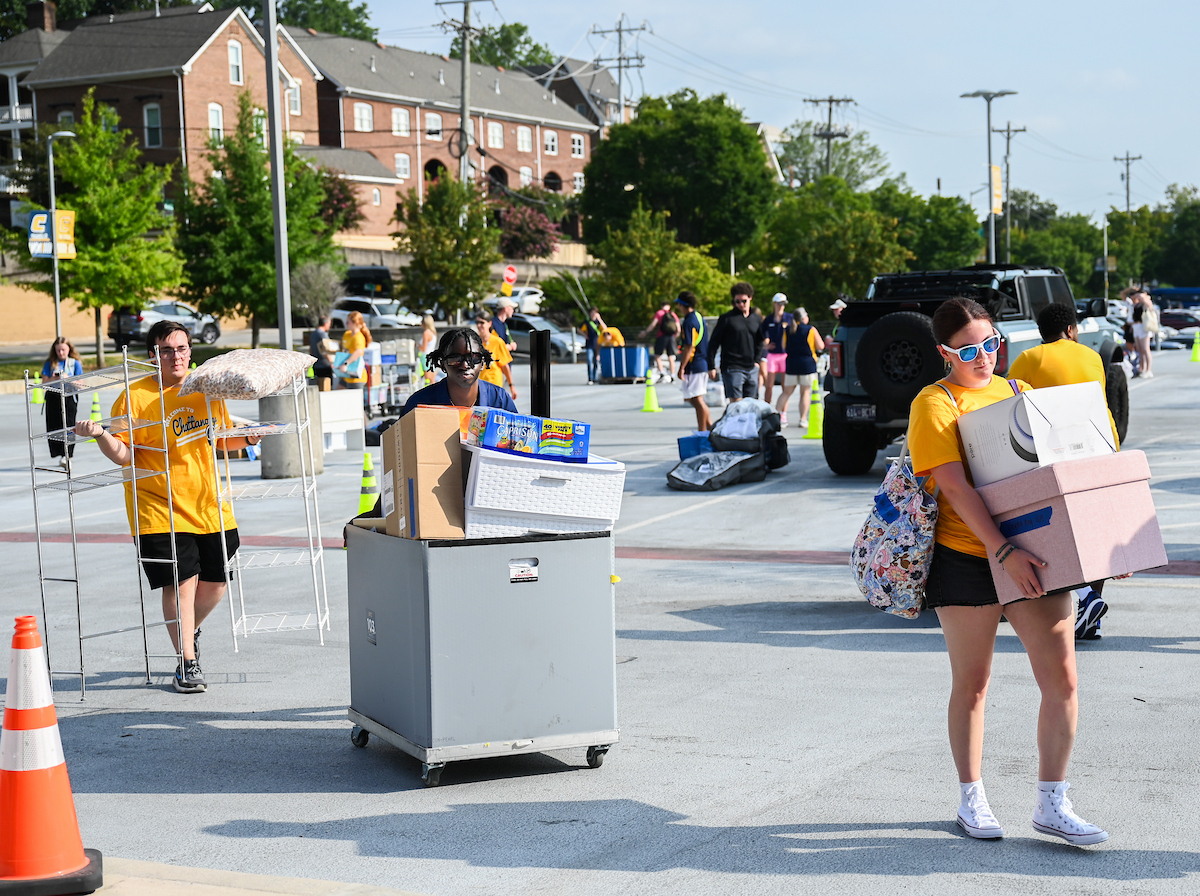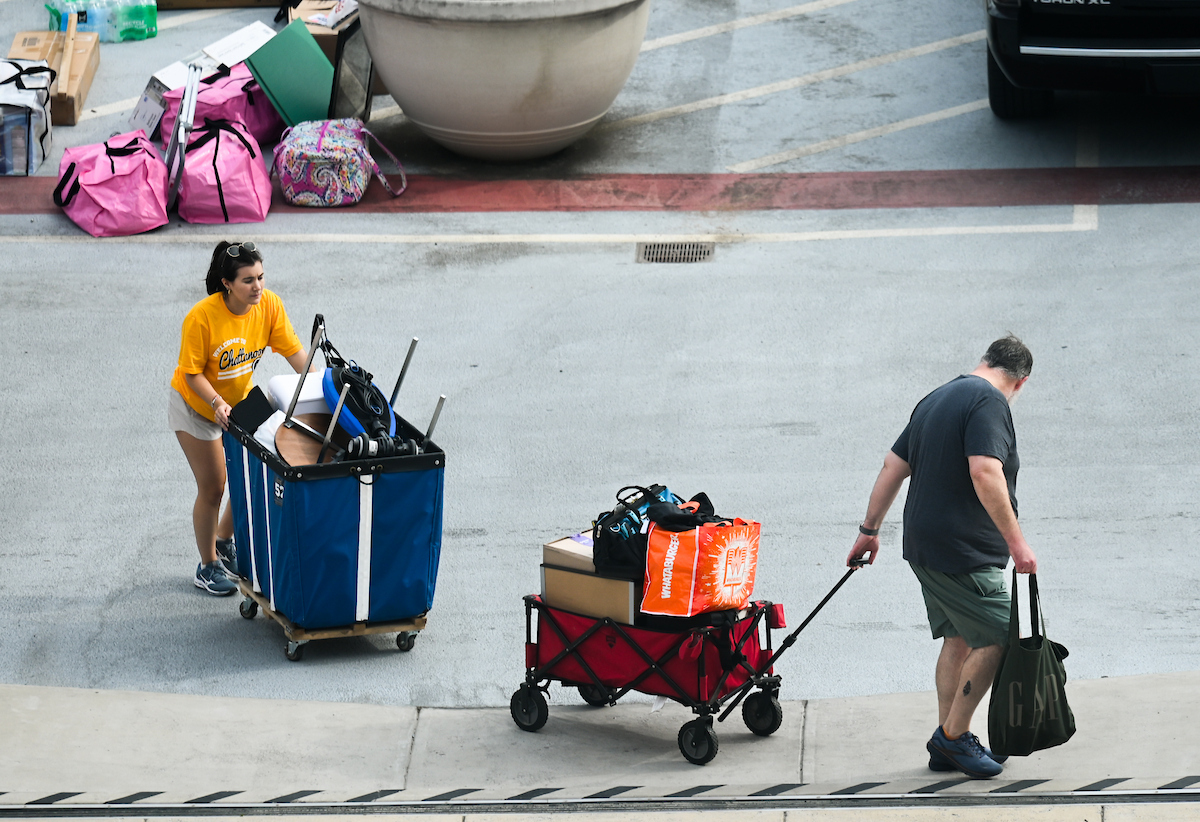 A barrage of TVs, suitcases and plastic totes were moved into dorms across the University of Tennessee at Chattanooga campus on Thursday, Aug. 15, where new students began their academic careers living on campus.