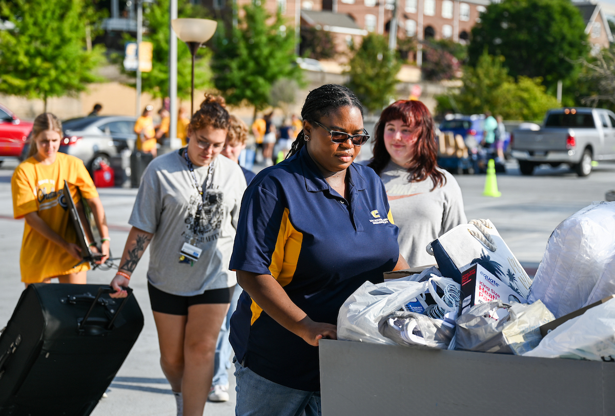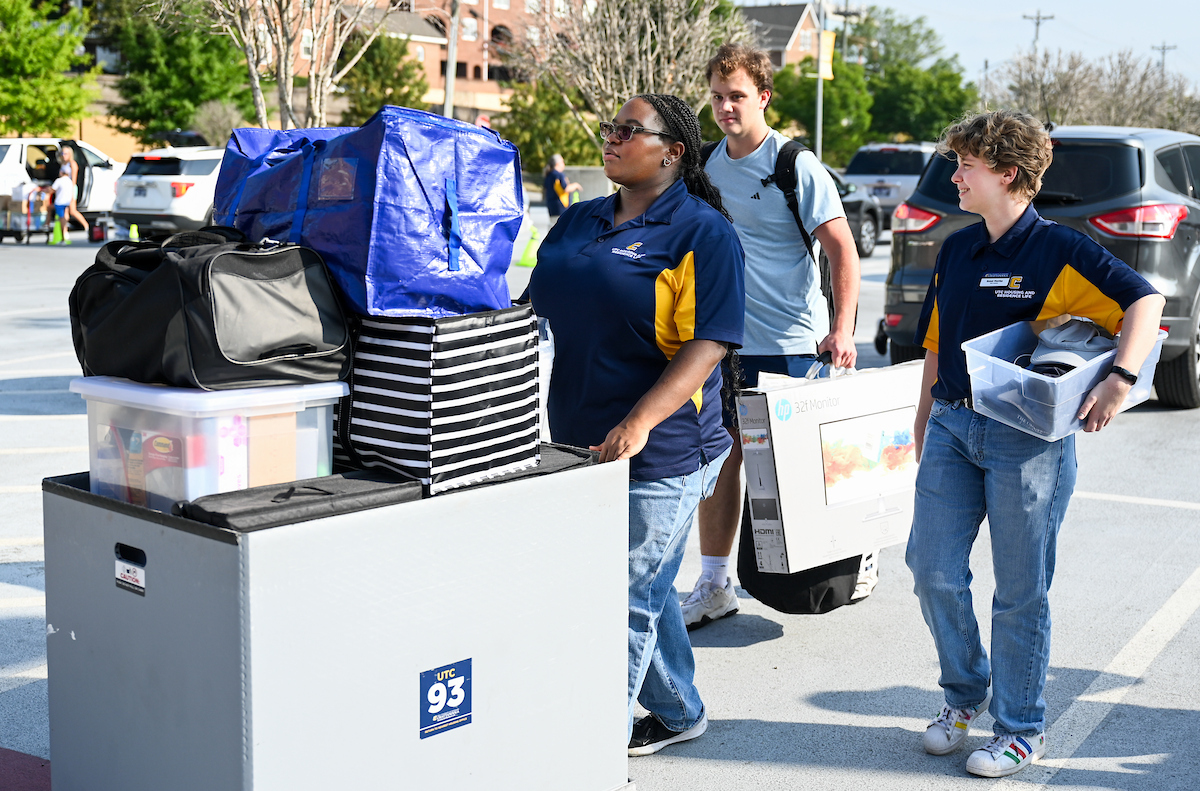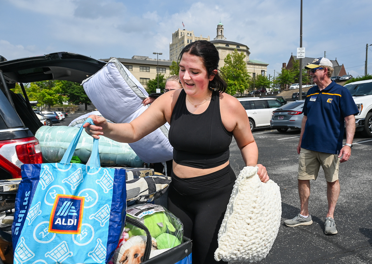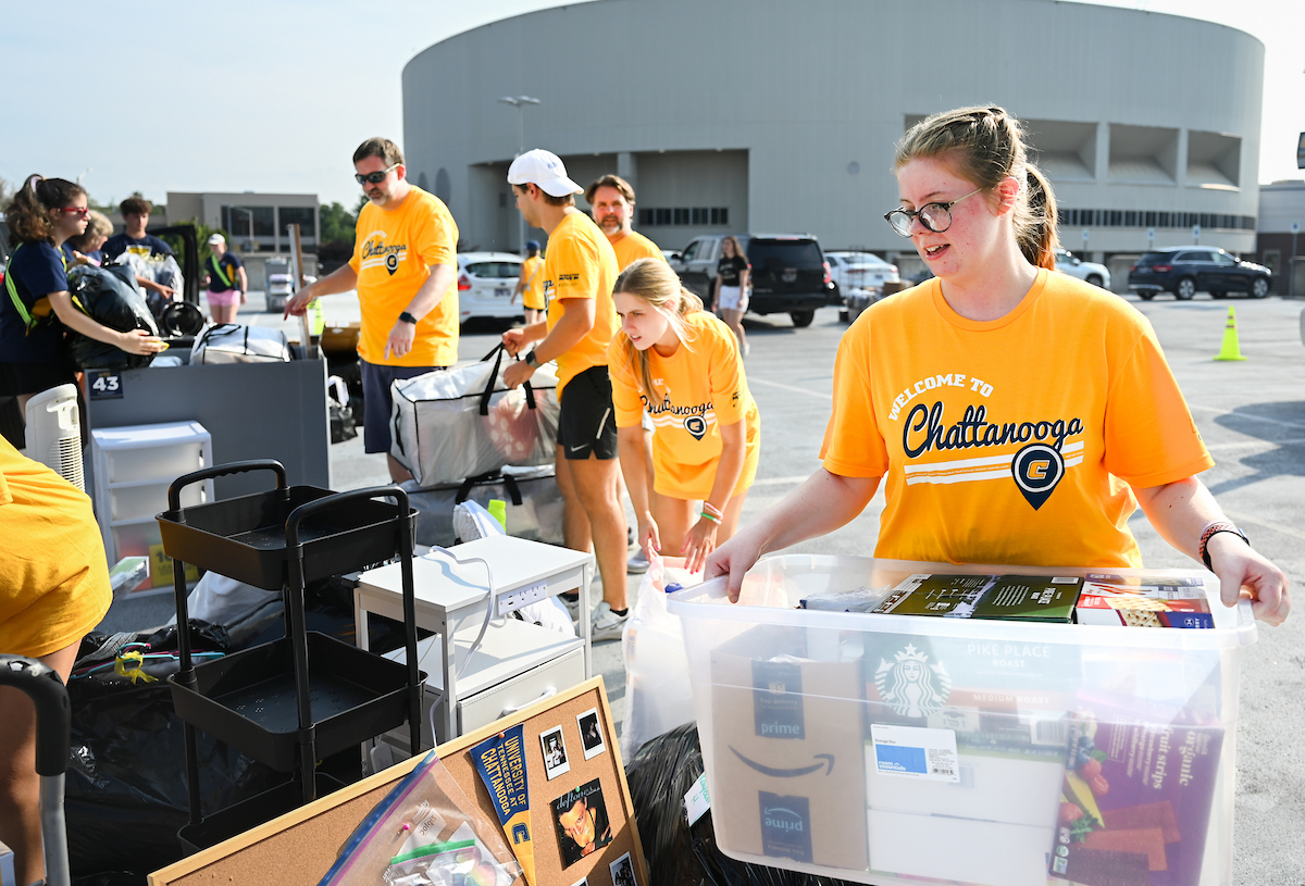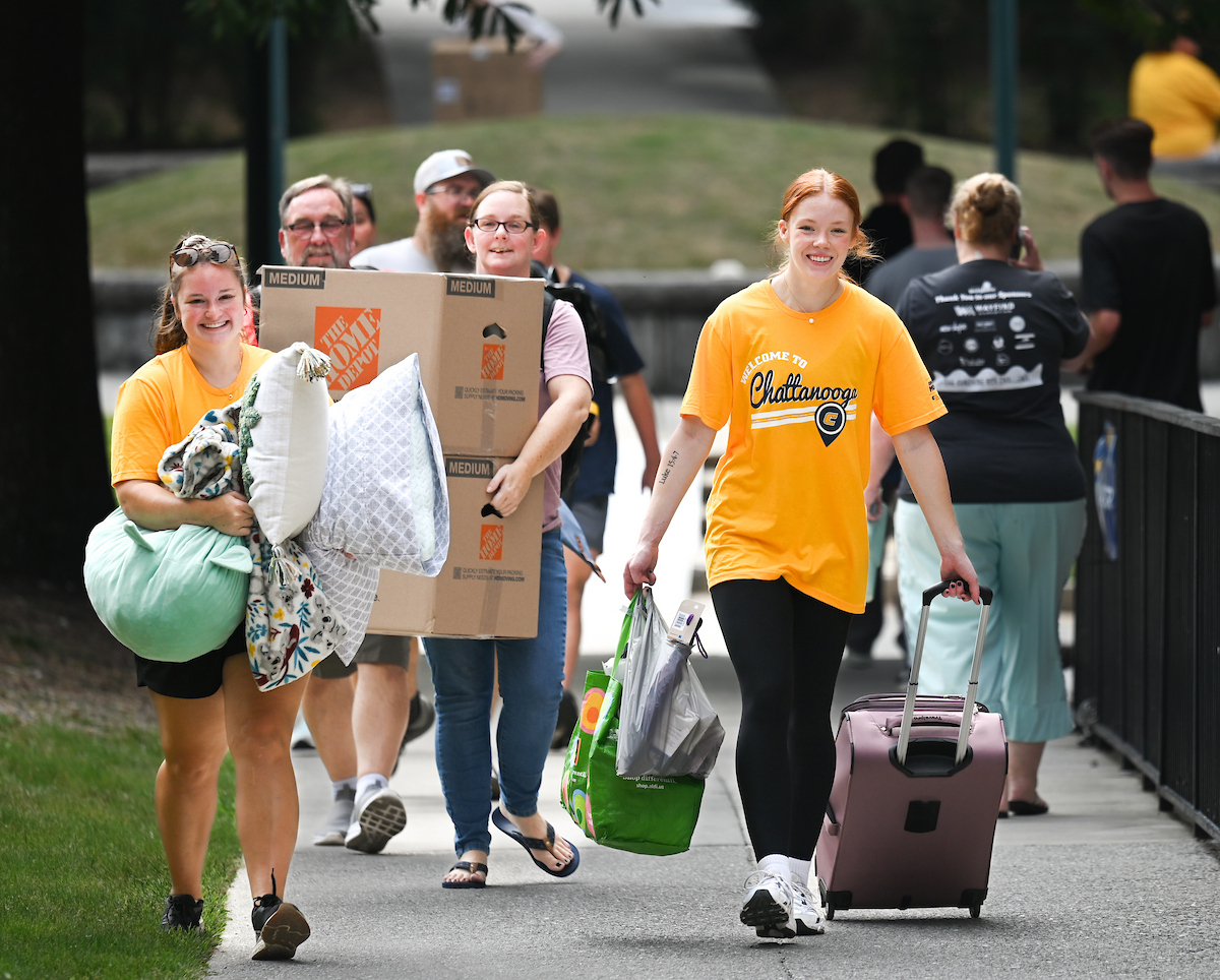 A barrage of TVs, suitcases and plastic totes were moved into dorms across the University of Tennessee at Chattanooga campus on Thursday, Aug. 15, where new students began their academic careers living on campus.