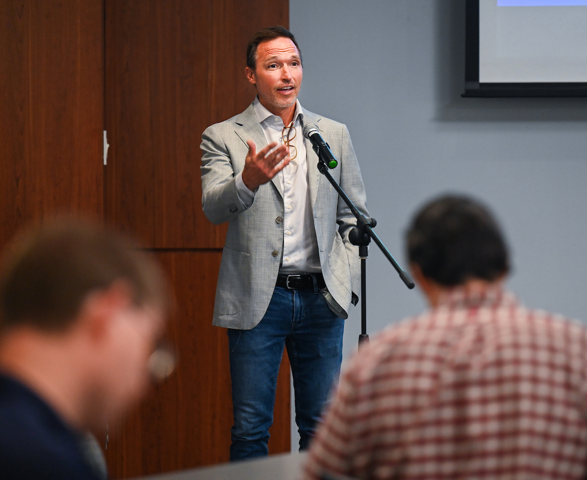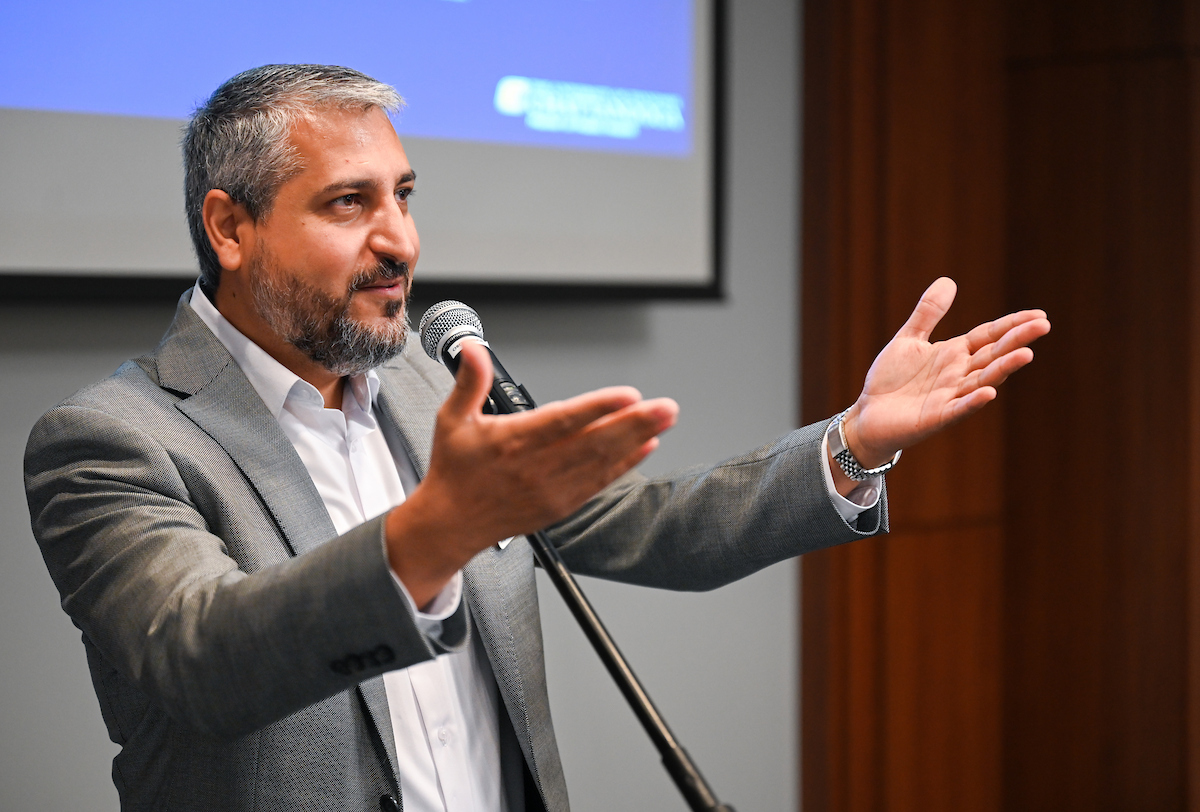 MPH Program Director Amir Alakaam gives remarks at the accreditation ceremony on Wednesday, Sept. 4.