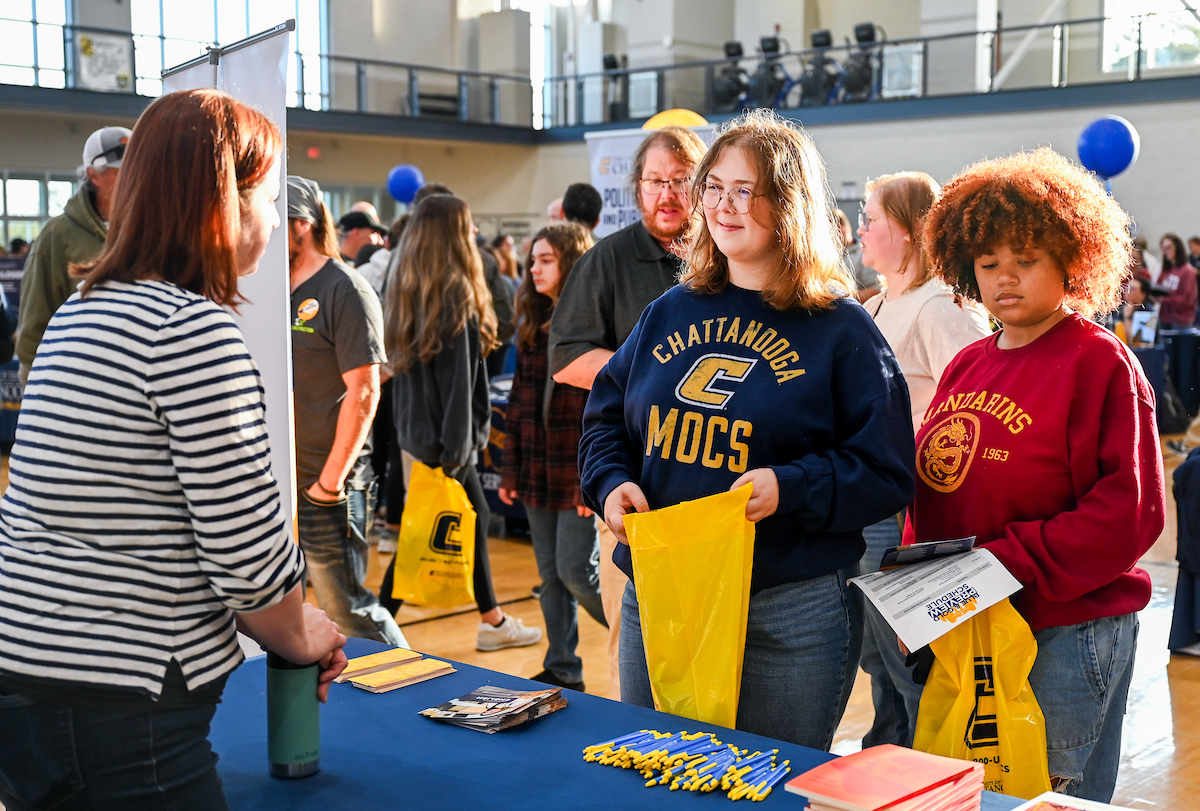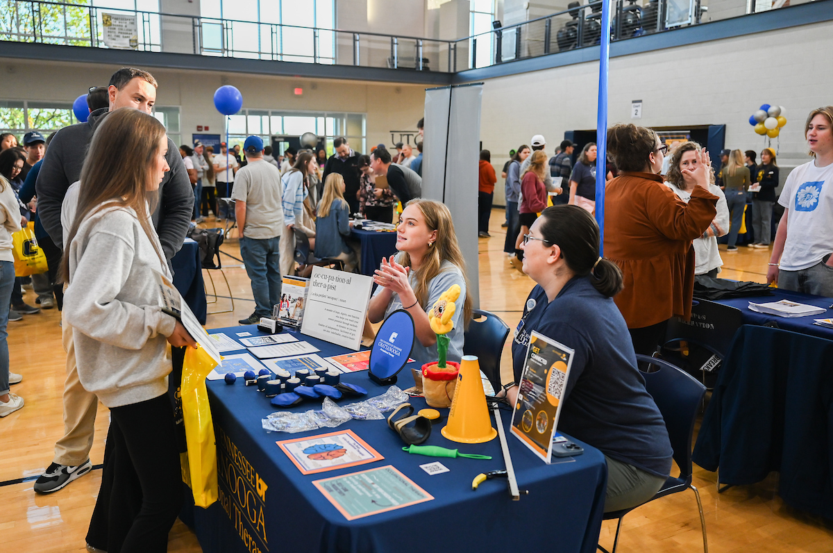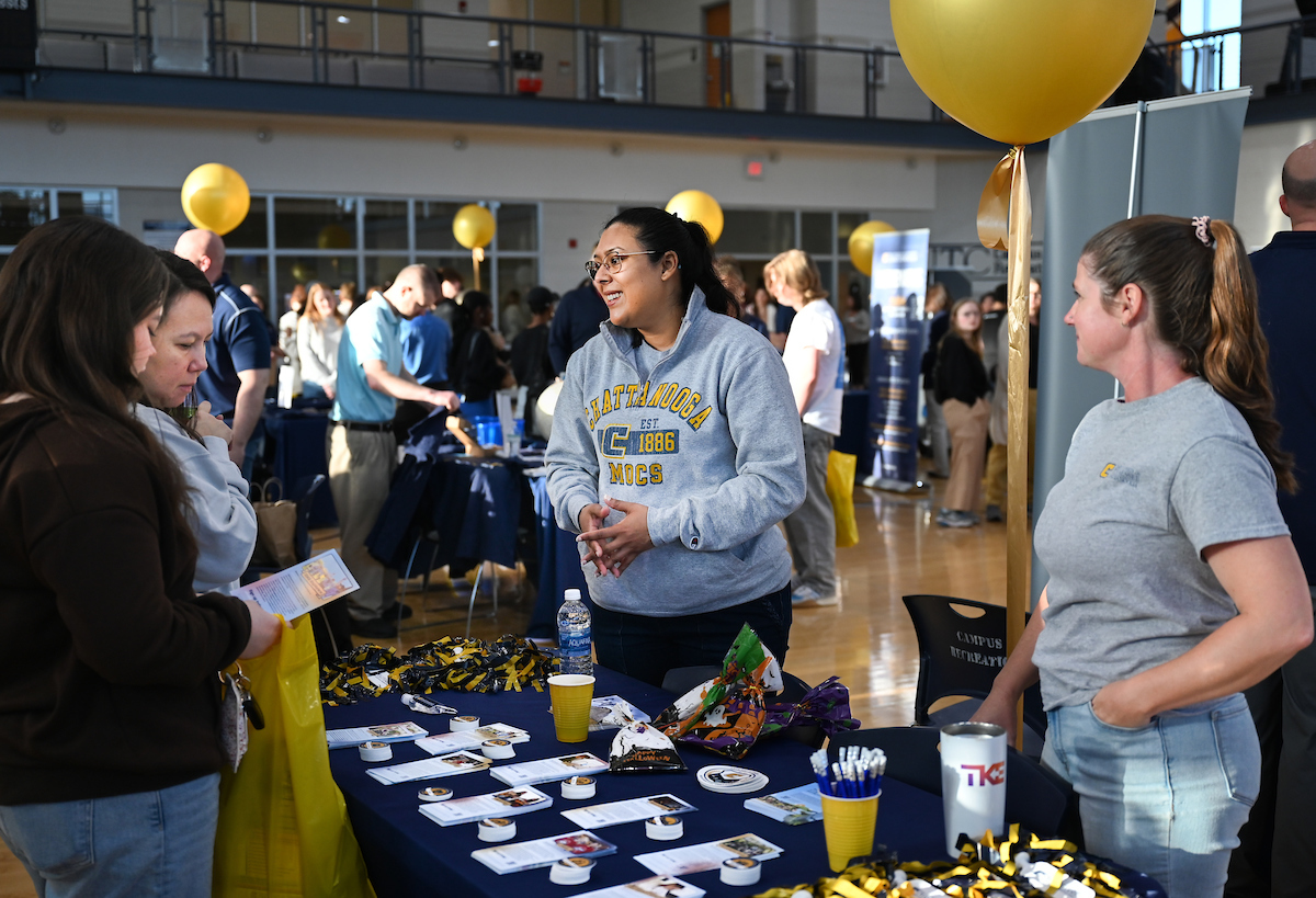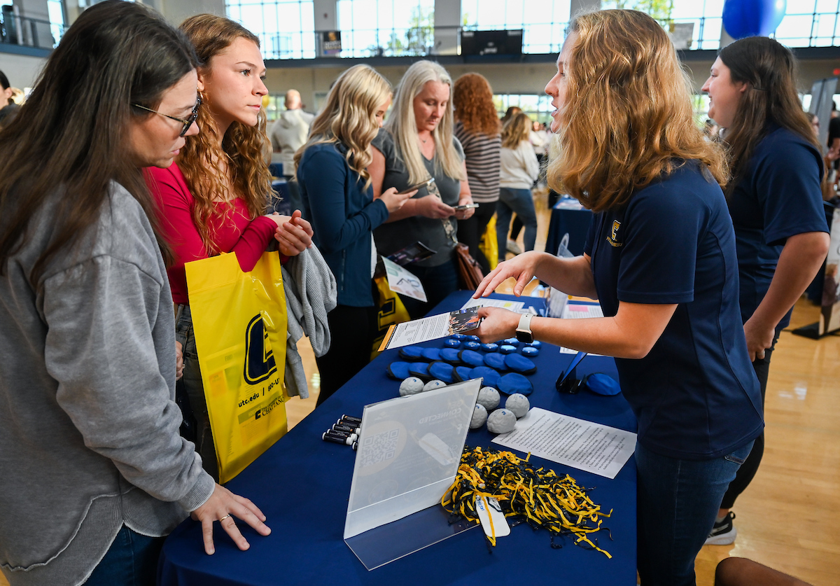 In addition to campus tours, information sessions and an application workshop, UTC faculty, advisors and current students set up booths in the Aquatic and Recreation Center.