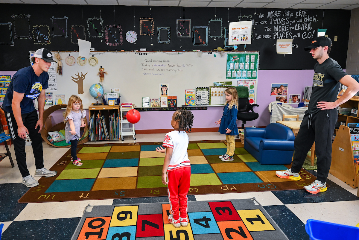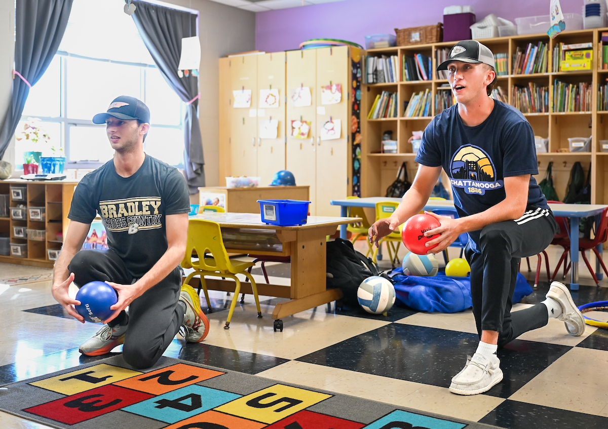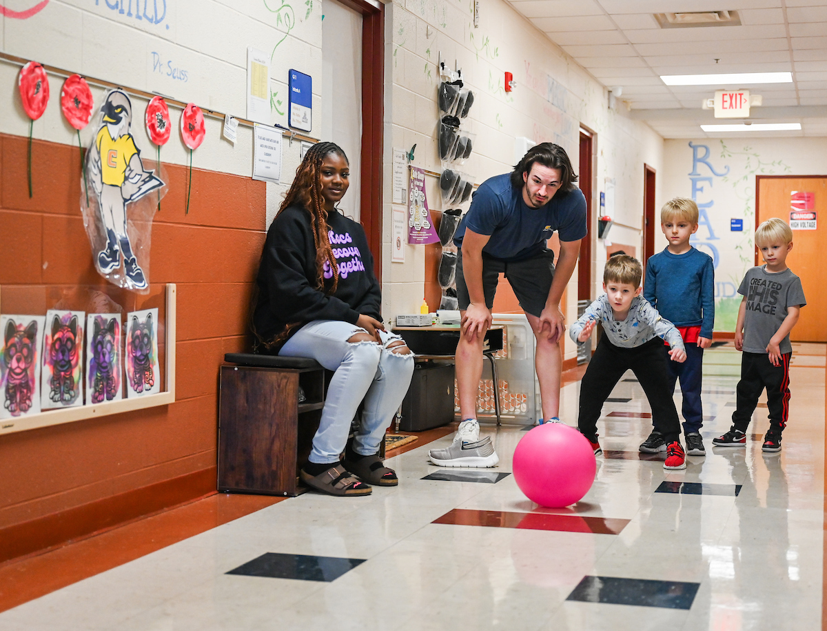 In November, six UTC Health and Physical Education students taught physical education lessons at the UTC Children’s Center at Brown Academy. These lessons taught children the importance of taking care of their bodies and finding happiness through physical activity. Photo by Angela Foster.