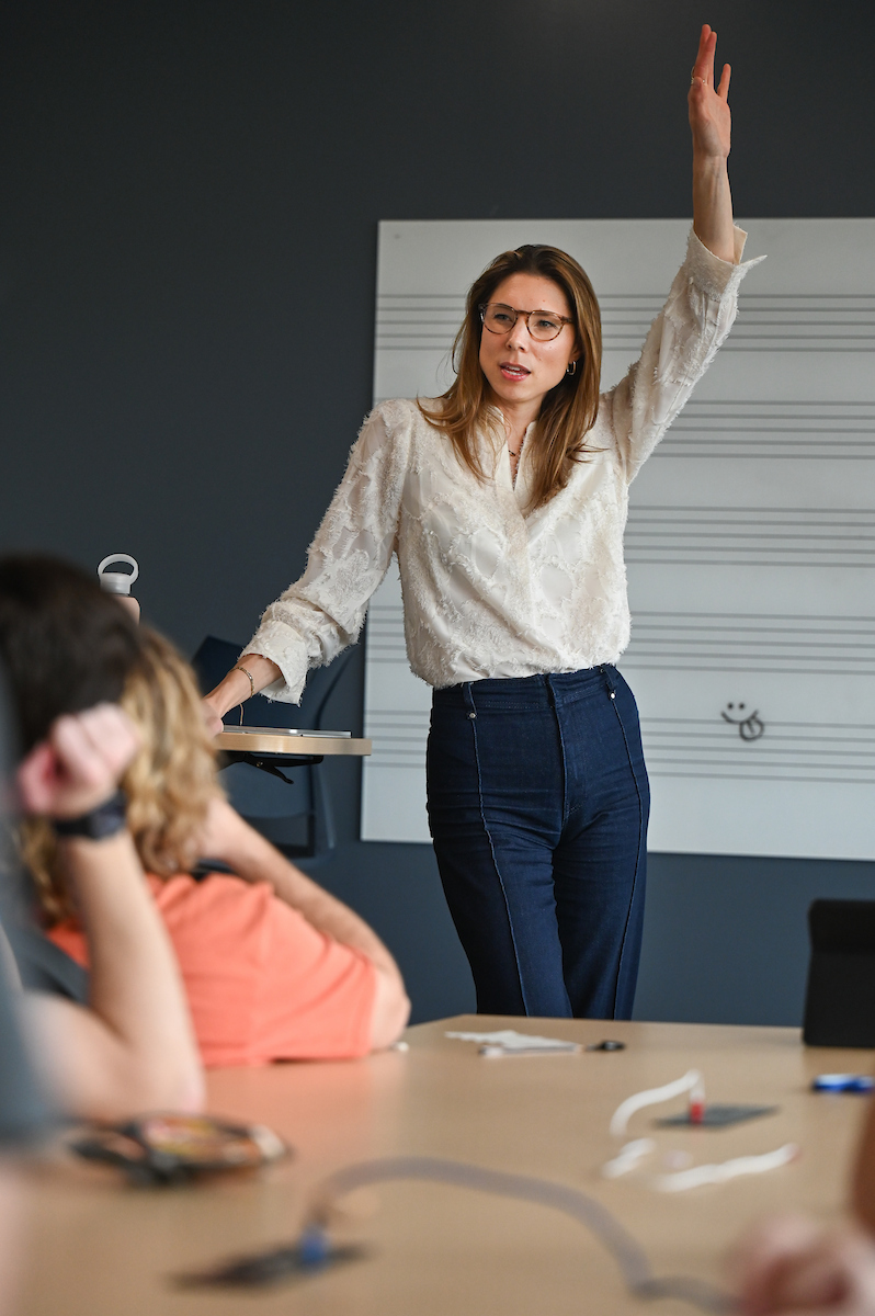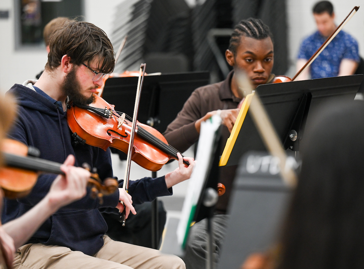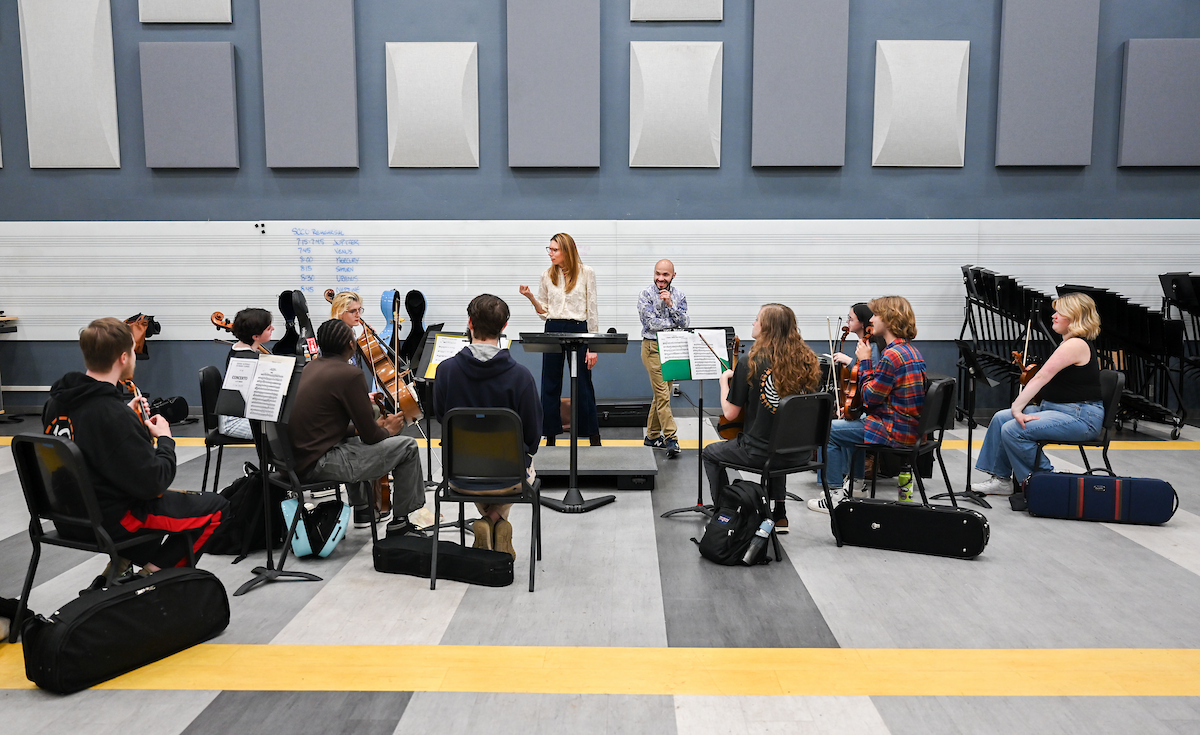 Sarah Whitney leads a workshop with the UTC Chamber Strings Ensemble.