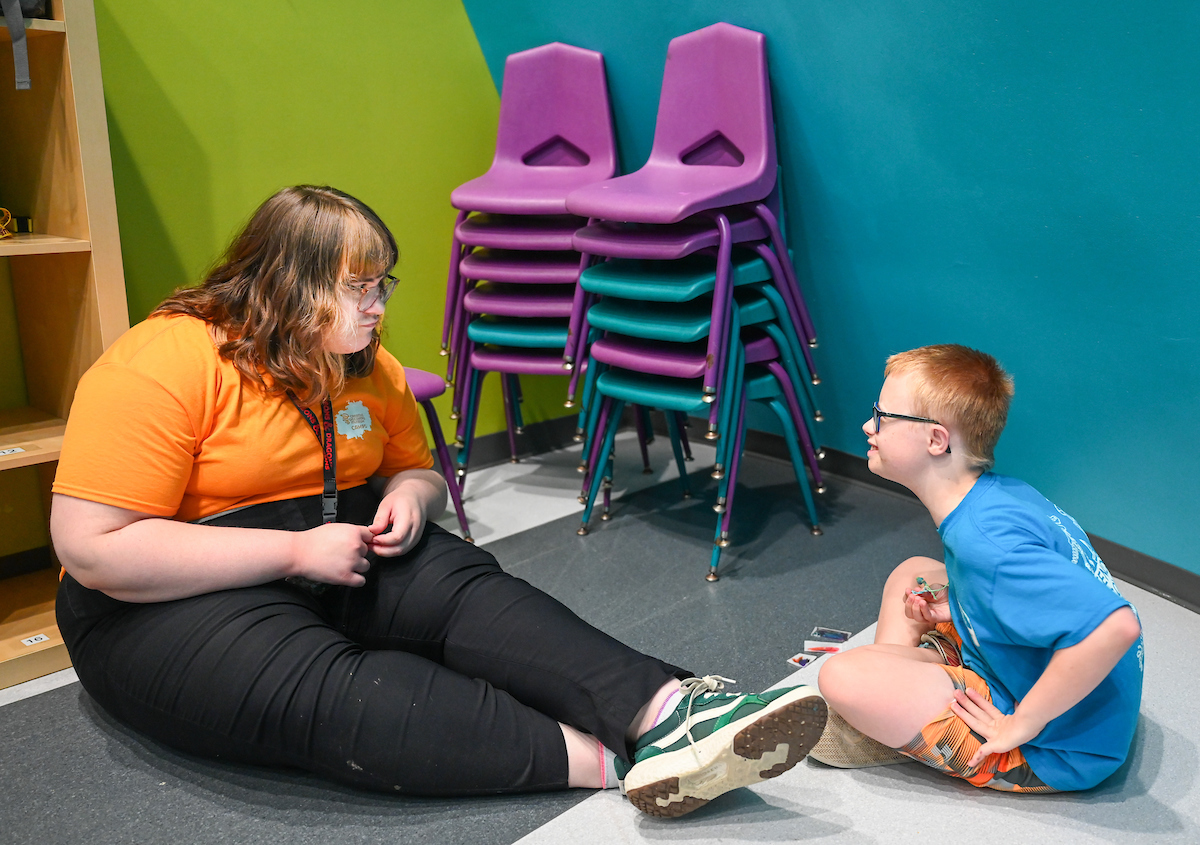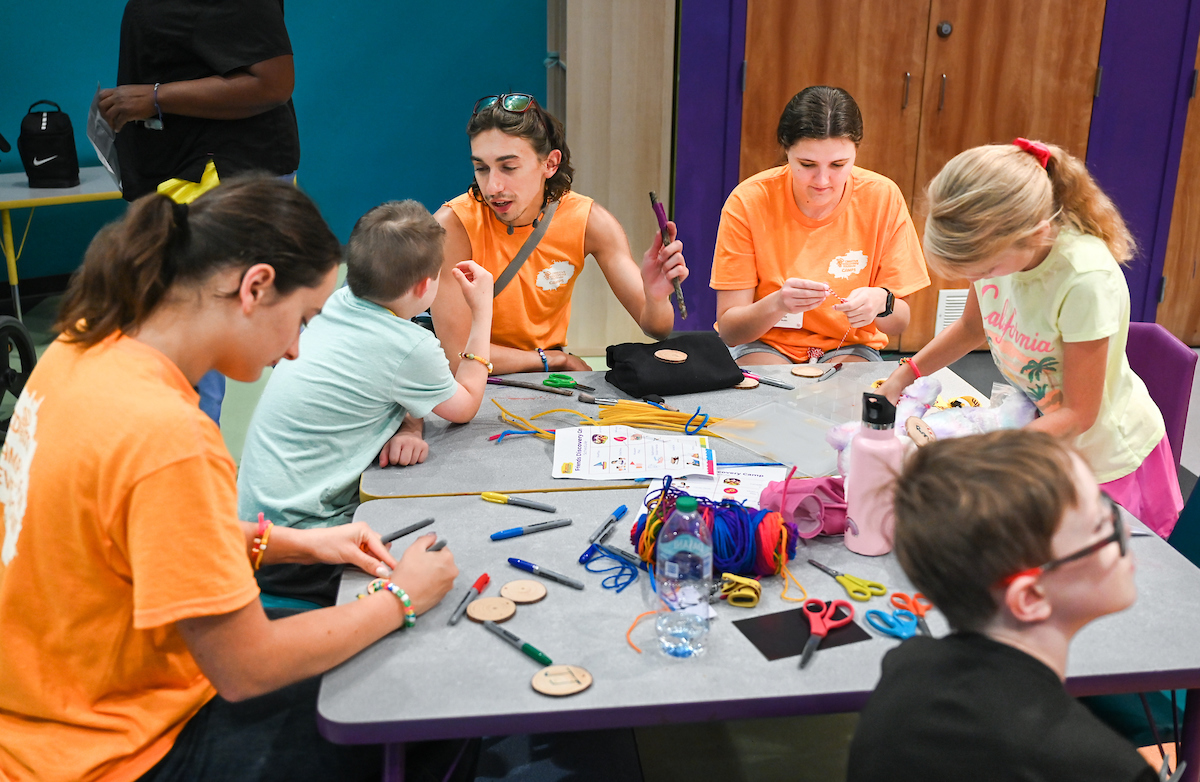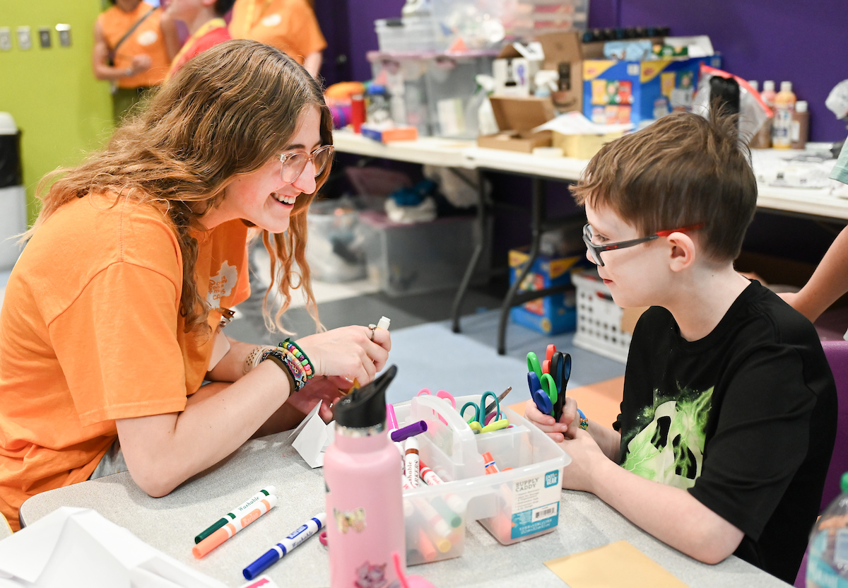 Psychology student Joy David works with a Friends’ Discovery Camps camper at the Creative Discovery Museum.