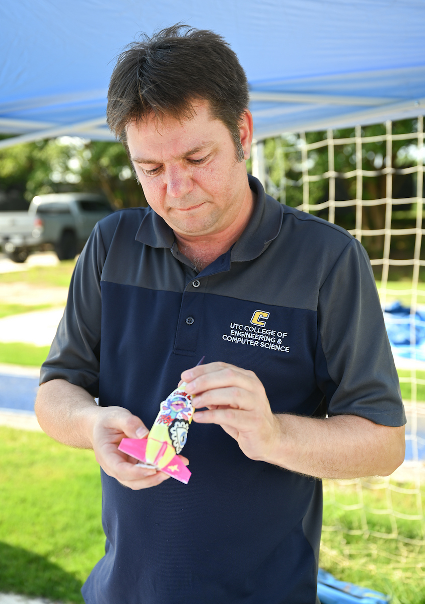 UC Foundation Associate Professor of Mechanical Engineering Trevor Elliott has been the Rocket Mocs faculty advisor since its inception. He was responsible for loading and launching the rockets while maintaining a safe distance from the launch site.