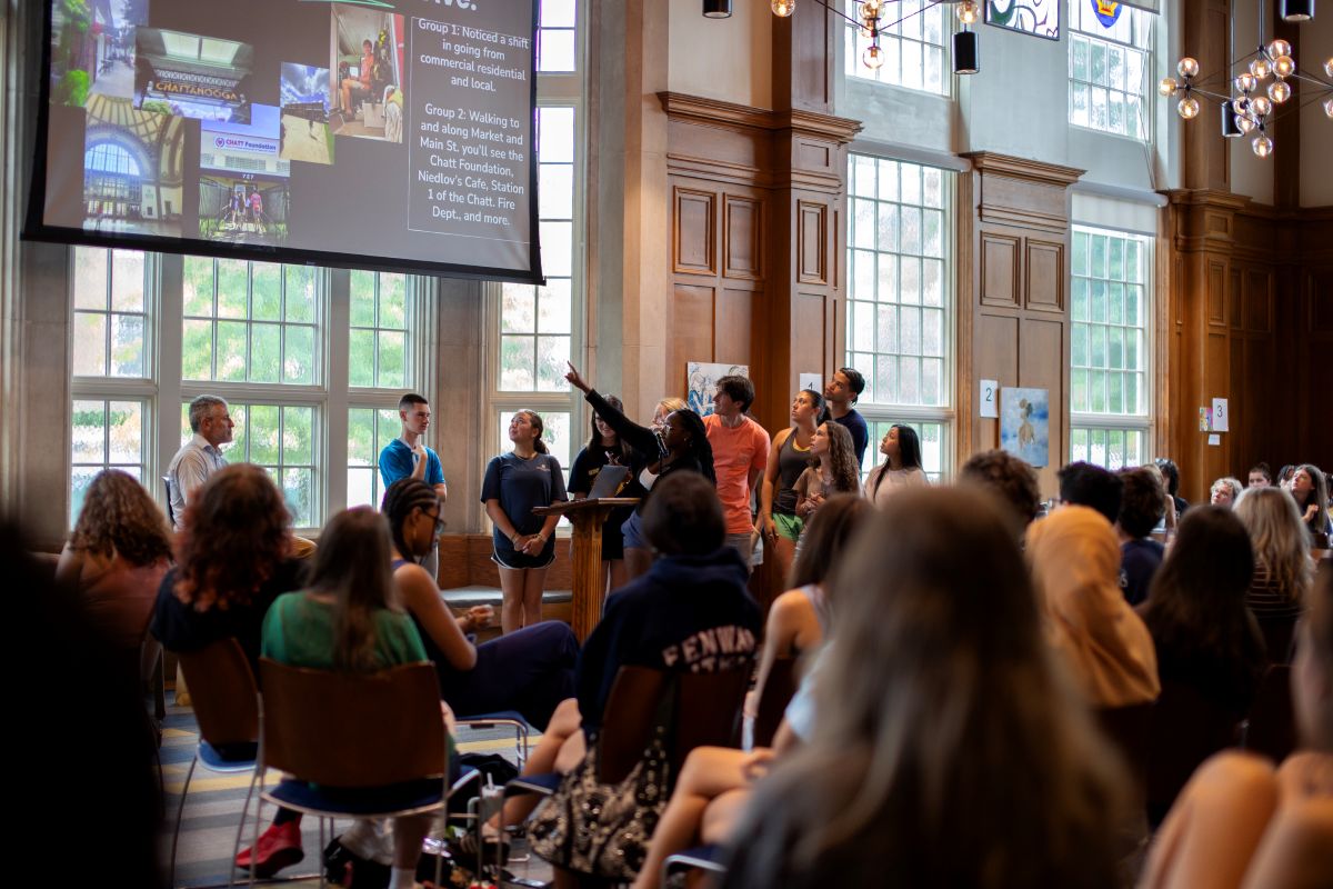 On Aug. 14, approximately 140 incoming UTC Honors College students in the Brock Scholars and Innovations in Honors programs were divided into groups of four to five and tasked with exploring local historic neighborhoods.