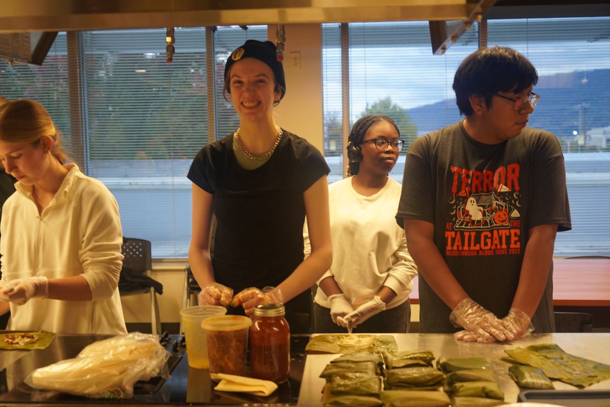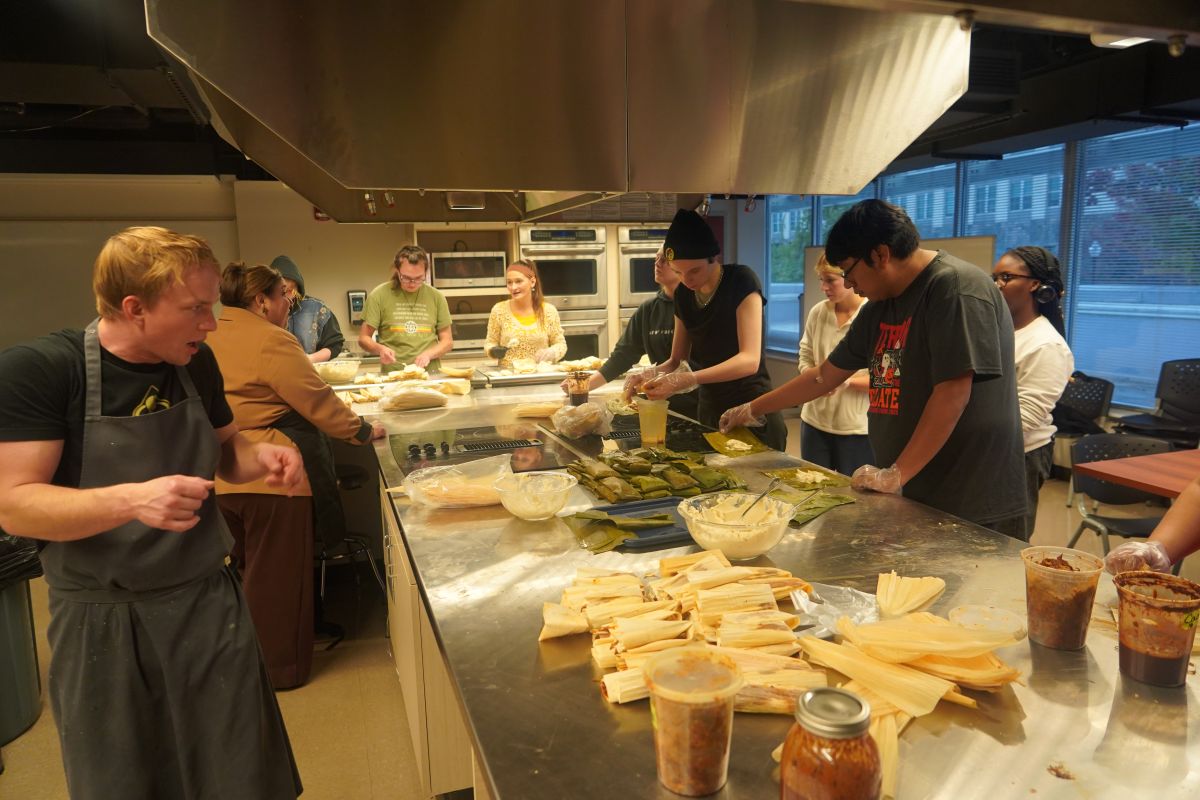 They scheduled an afternoon session in the Department of Health and Human Performance’s Food Science Lab, with a maximum of 16 students per shift. By the end of the three-hour window, more than 40 students had rolled, filled and wrapped over 200 tamales.
