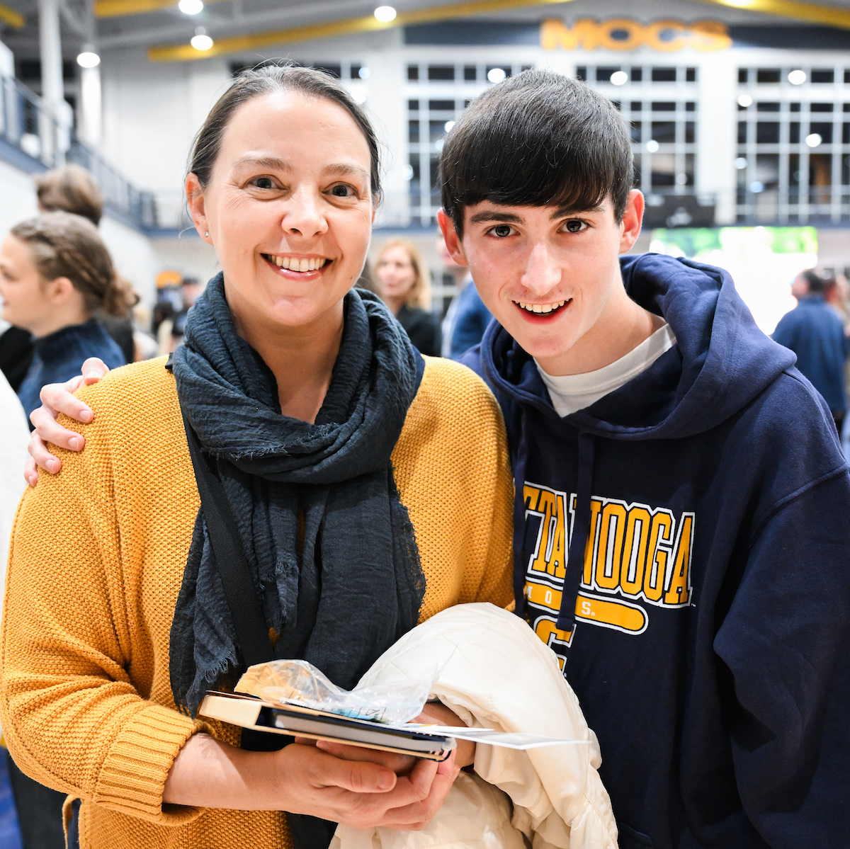 Display tables filled the UTC Aquatic and Recreation Center (ARC), representing academic departments, student organizations, campus offices and student support programs. Families visited each one, gathering information and meeting faculty, staff, and current students.