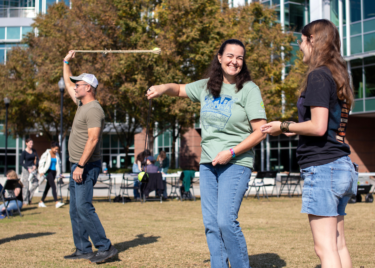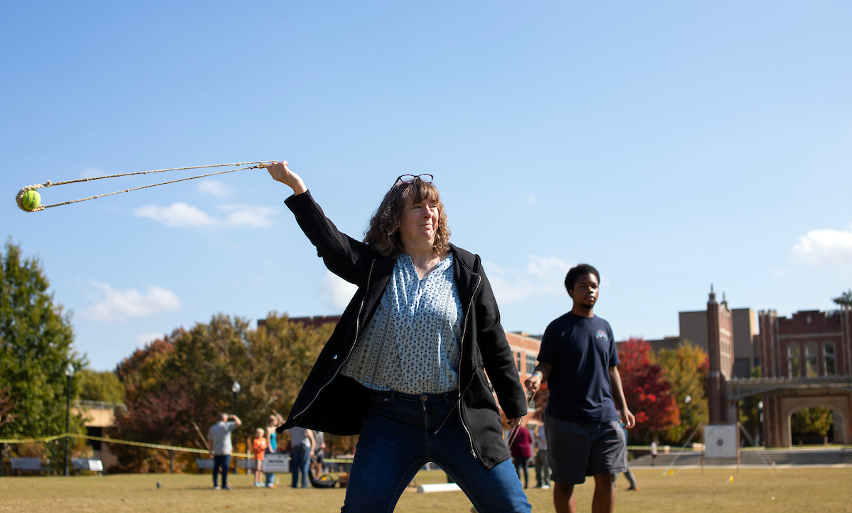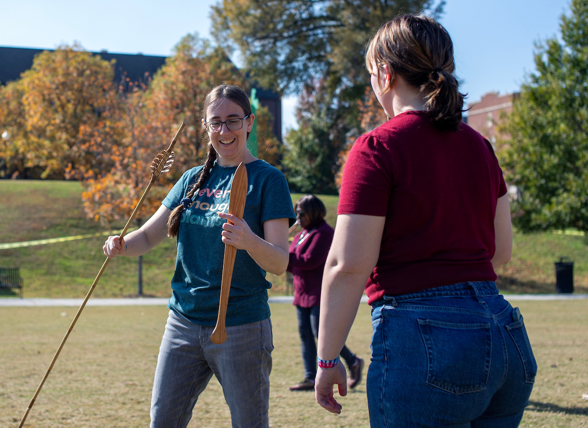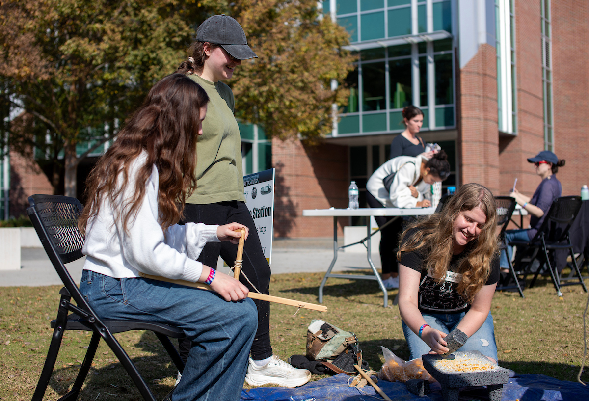 “The goal is to get students involved in what we’re learning about in class,” said Dr. Brooke Persons, director of the Jeffrey L. Brown Institute of Archeology. “Everybody everywhere made certain tools. Everybody everywhere learned how to do agriculture. Everybody everywhere started making things like spear throwers, atlatls, darts or projectile points. So the goal is to provide students with a fun way to learn about indigenous technologies and global prehistory.”