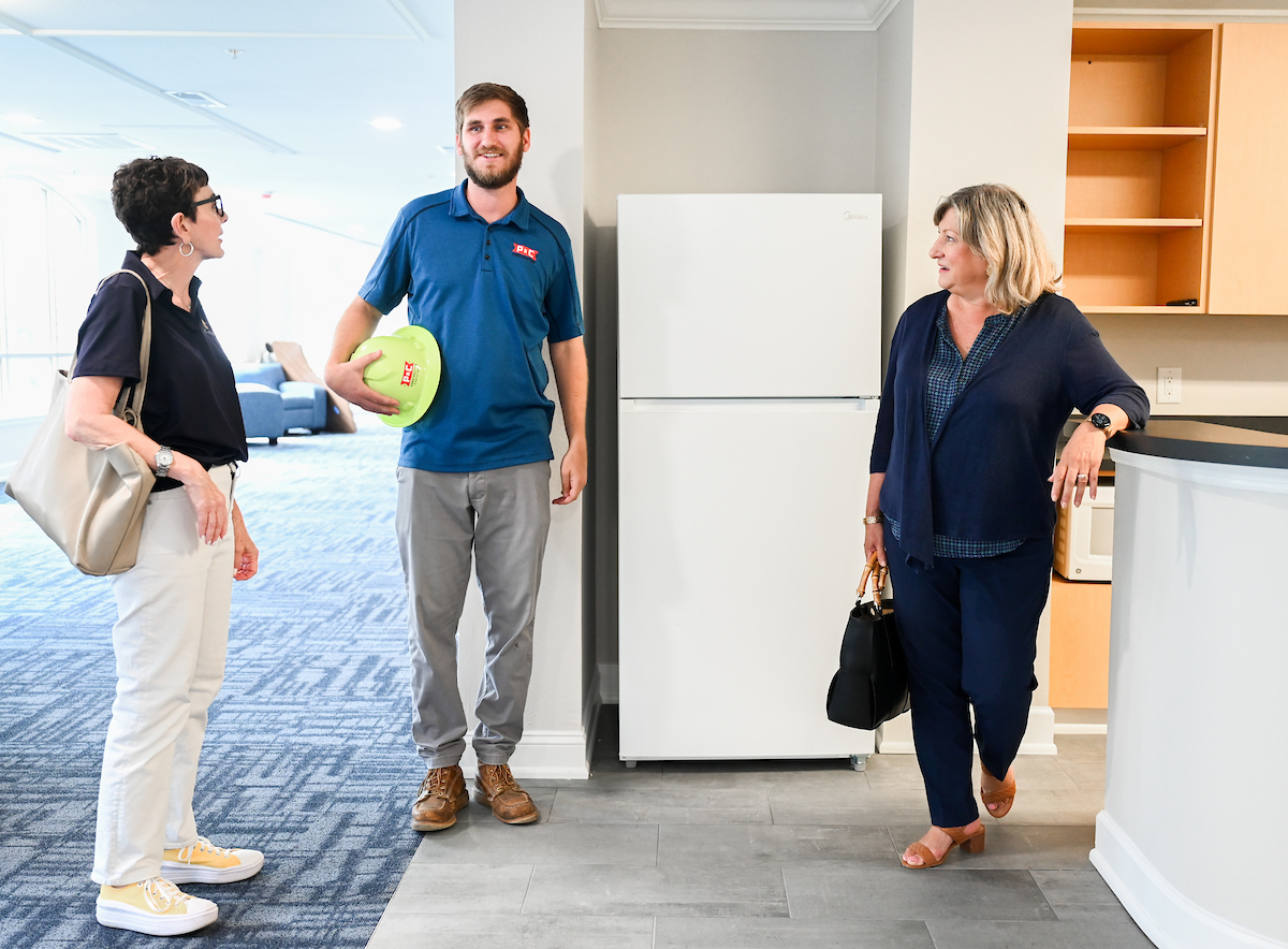 After seven summers of construction, the on-campus UC Foundation Apartments concluded its $52 million renovation project. On July 25, Bruce toured the residence hall.