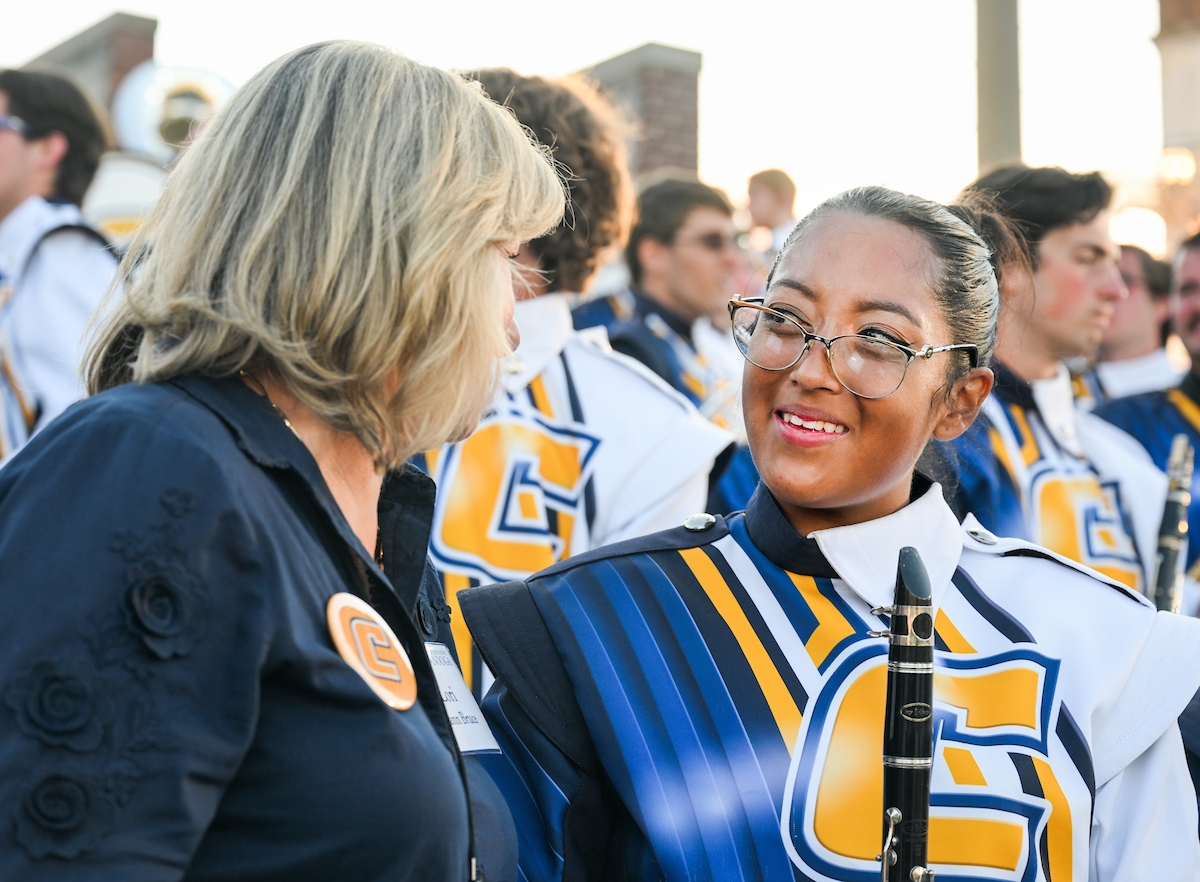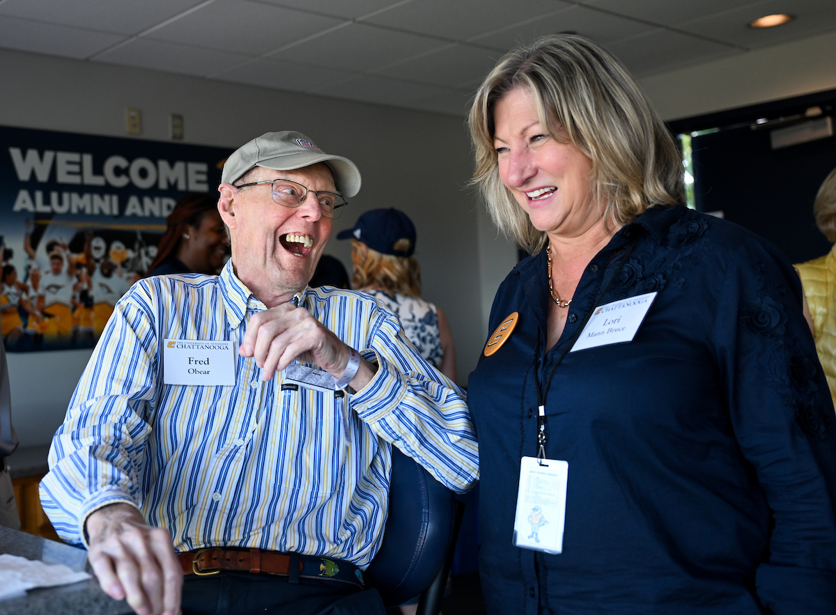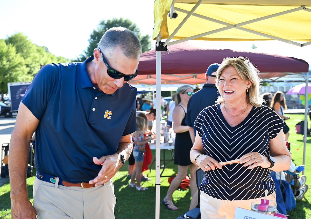Bruce and her husband, Professor of Electrical Engineering JW Bruce, held up many “Power C’s” at the Mocs football home opener. She enjoyed spending time with the UTC twirlers, as she was a baton twirler herself in high school. The Mocs defeated the Stetson Hatters 63-0.