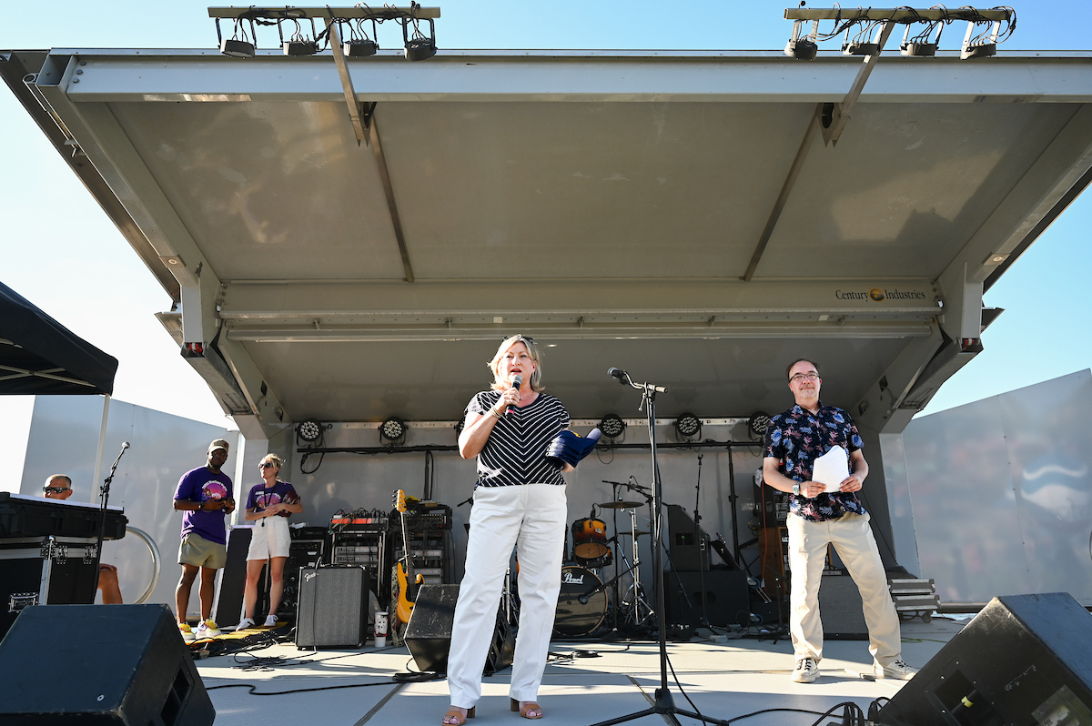 Riverfront Nights, a free weekly concert series at Ross’s Landing, is one of Chattanooga’s favorite summer traditions that has continued for nearly two decades. Alongside Mocs Football Coach Rusty Wright, Bruce took the stage to introduce herself to her new Chattanooga community.