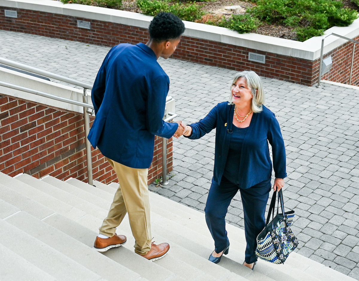 On June 30, her official first day as chancellor, Bruce walked to her Founders Hall office from her West Campus apartment. Students greeted her as she made her way.