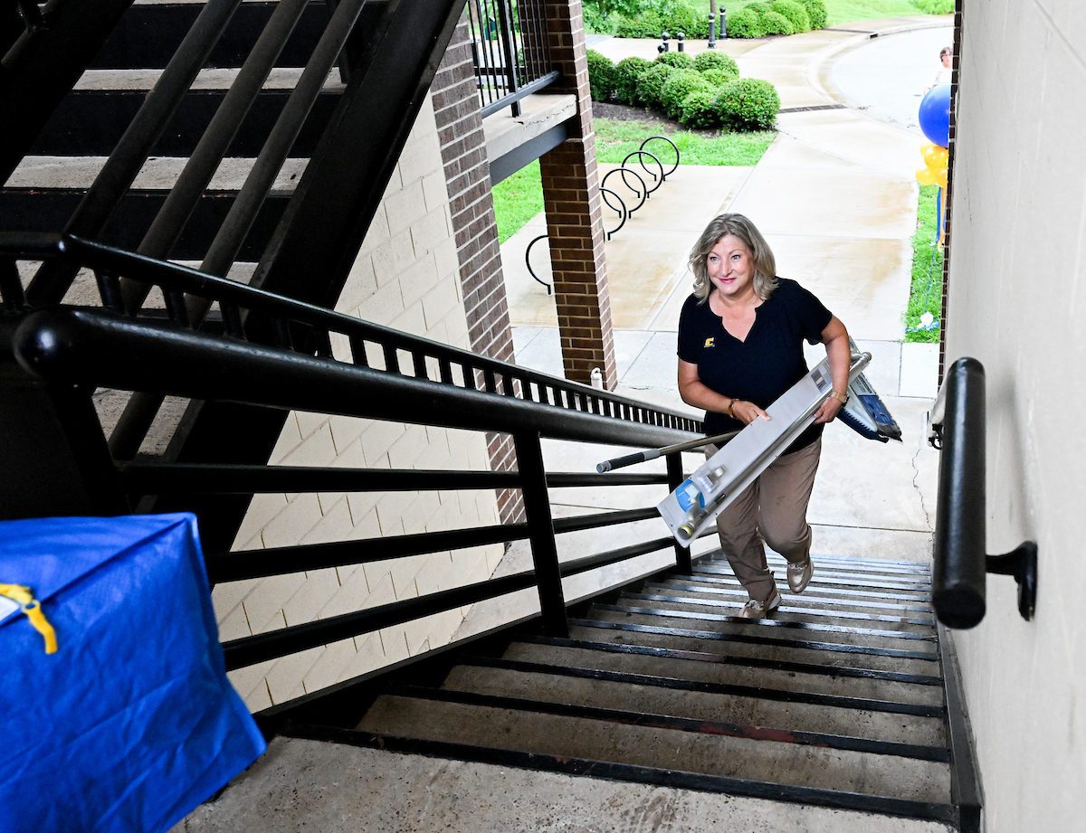 Bruce spent her birthday moving into her West Campus apartment where she lived for her first weeks as chancellor. Though she said she had planned a UTC-themed shopping spree, a basket of blue and gold awaited her when she walked in the door for the first time.