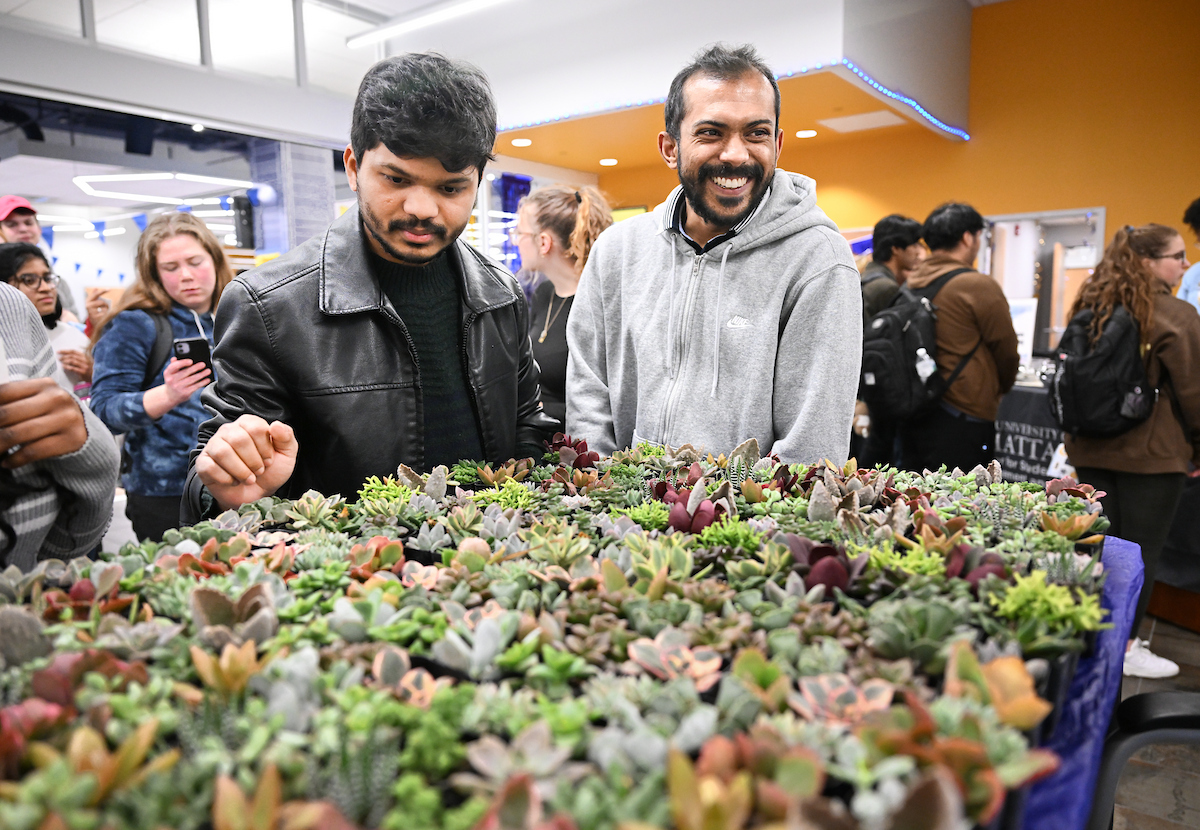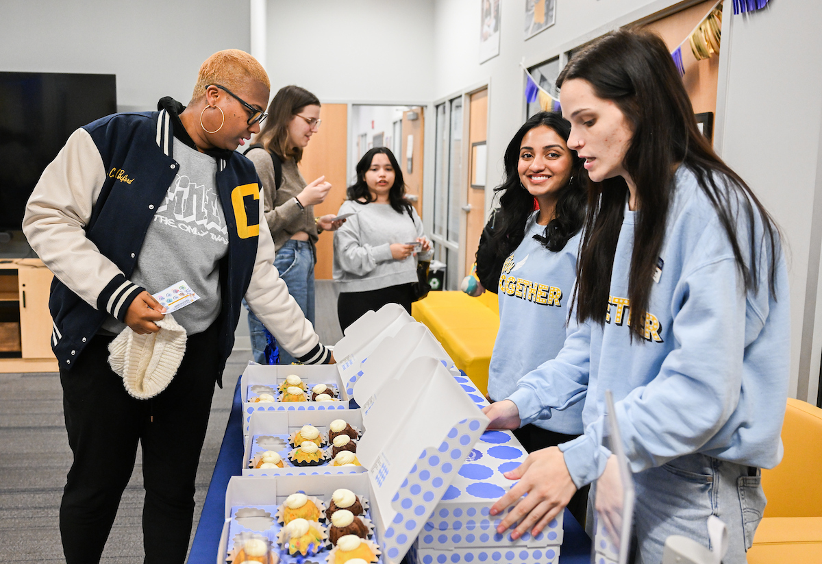 The event brought the campus community together for food, games, a photo booth, button making and giveaways, including free succulents and sweatshirts. Throughout the afternoon, students moved through the center, talked with staff and learned more about the programs and support housed in the space.