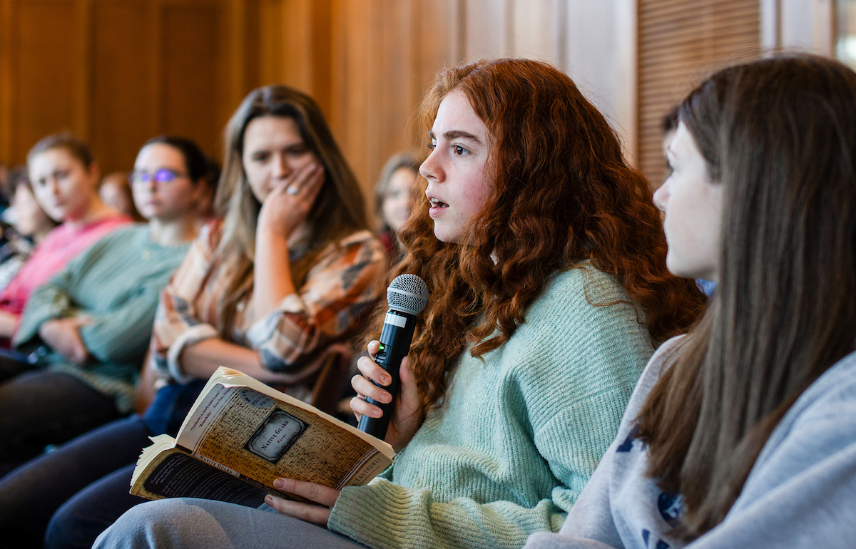 History major Allison Cable, a freshman from McEwen, Tennessee, said she came to the event hoping to get a better understanding of the connection between poetry and history. She explained that she is not very familiar with poetry but is excited to learn.