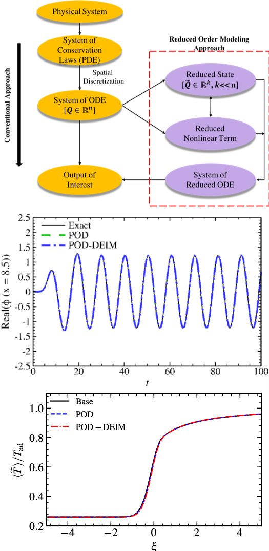 - POD-DEIM based ROM: The approach offers a significant reduction in computational cost compared to POD based ROM for nonlinear problems.