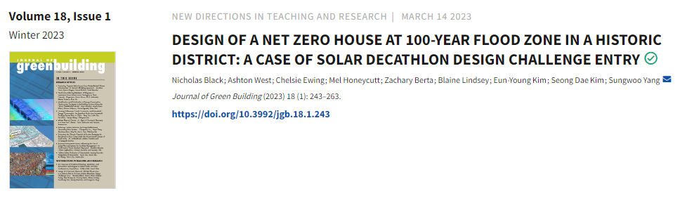 Congratulations to 2022 UTC Solar Decathlon team (DOE) on a new publication in Journal of Green Building. [link]